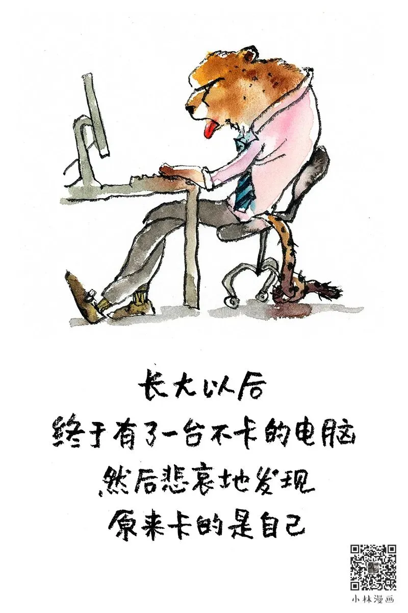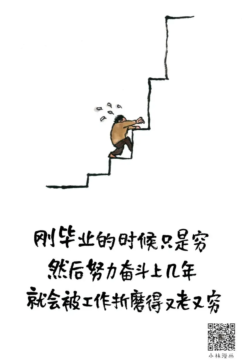 那时候真是“穷横”的,觉得世界都是我的。结果被社会毒打几年之后才发现自己的发际线比钱包更发达了。“越忙越贫”这种无力的感觉我想大家都有一定的了解吧?但是就像小林画的那样,在前面有光的时候就可以坚持下去不管有多累也要继续往前走。生活就是在这样的死循环中寻找出路,撞得头破血流也不为过,只要还没有放弃就还有希望可言。