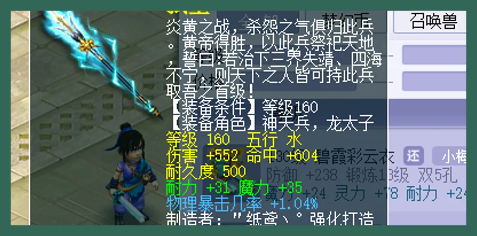 更重要的是蓝字特效,给的物理暴击几率增加0.4%你说它没有用吧,也不至于那么明显;但是你认为它契合的话就有点尴尬了,因为这把枪的双加更像法系在使用,结果特效却是物理向的,这就属于“属性努力往一边走,蓝字偏偏往另一边拽”。因此很多时候梦幻装备的价值主要是看整体配置,并不是单条。