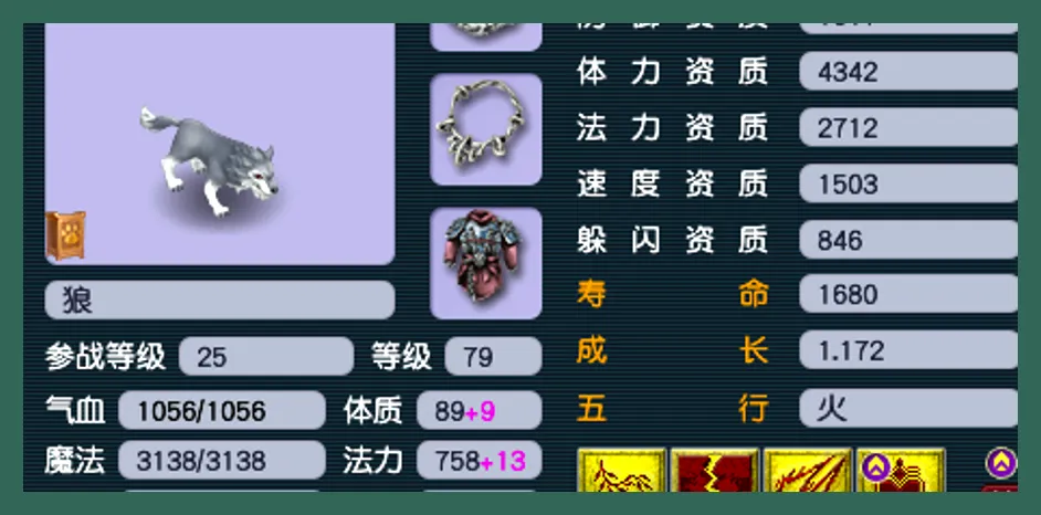 这只森林狼挺有意思的,须弥真言本身就不多见在这样的造型上,而且它的技能数量也不少,整体已经偏向成品了。面板资质也很突出体力资质4342、法力资质2712,速度资质也还可以1503这就意味着它稍微加点敏捷,速度就能跟上节奏。再加上进阶带来的属性提升以及套装去补速度之后,在日常、活动或者对速度有要求的场景下都可以直接使用了。