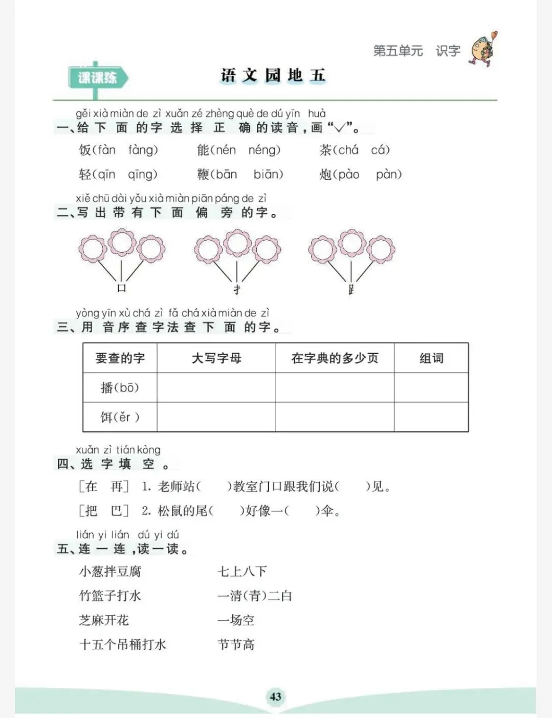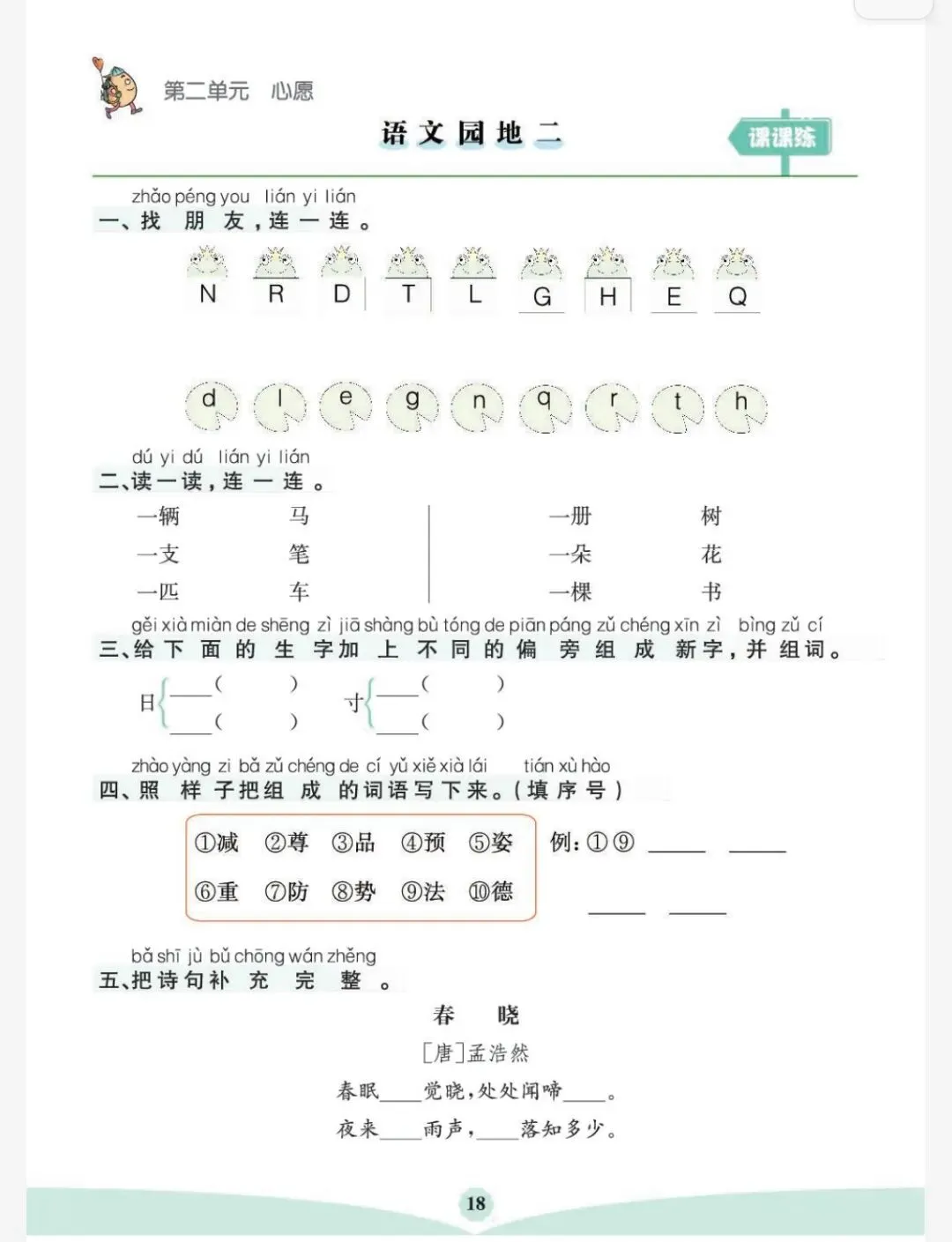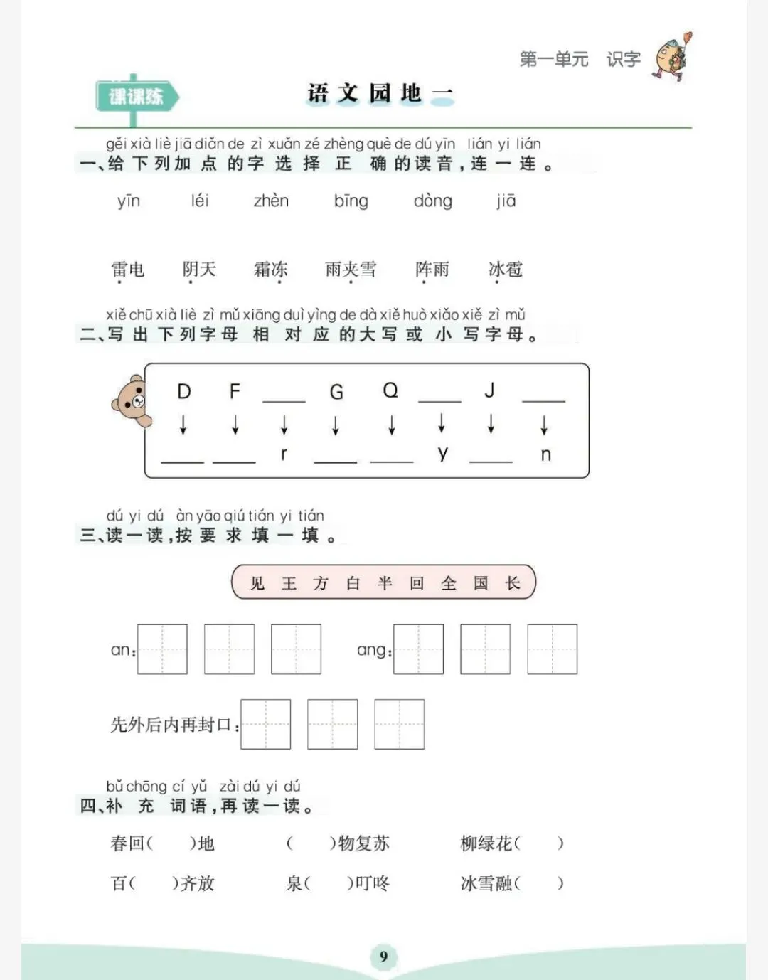 26春一年级下册语文园地专项练习(可免费保存打印)
