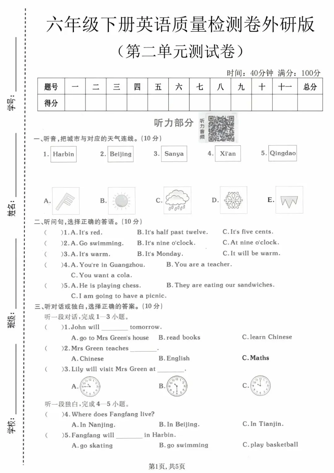 26春六年级下册(外研版)英语《第一二三四单元测试卷》含答案 含听力,可下载打印~
