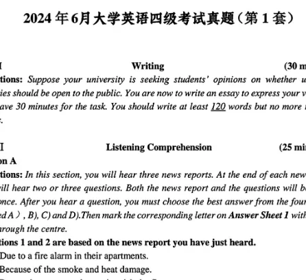英语四六级历年真题(答案及解析)PDF