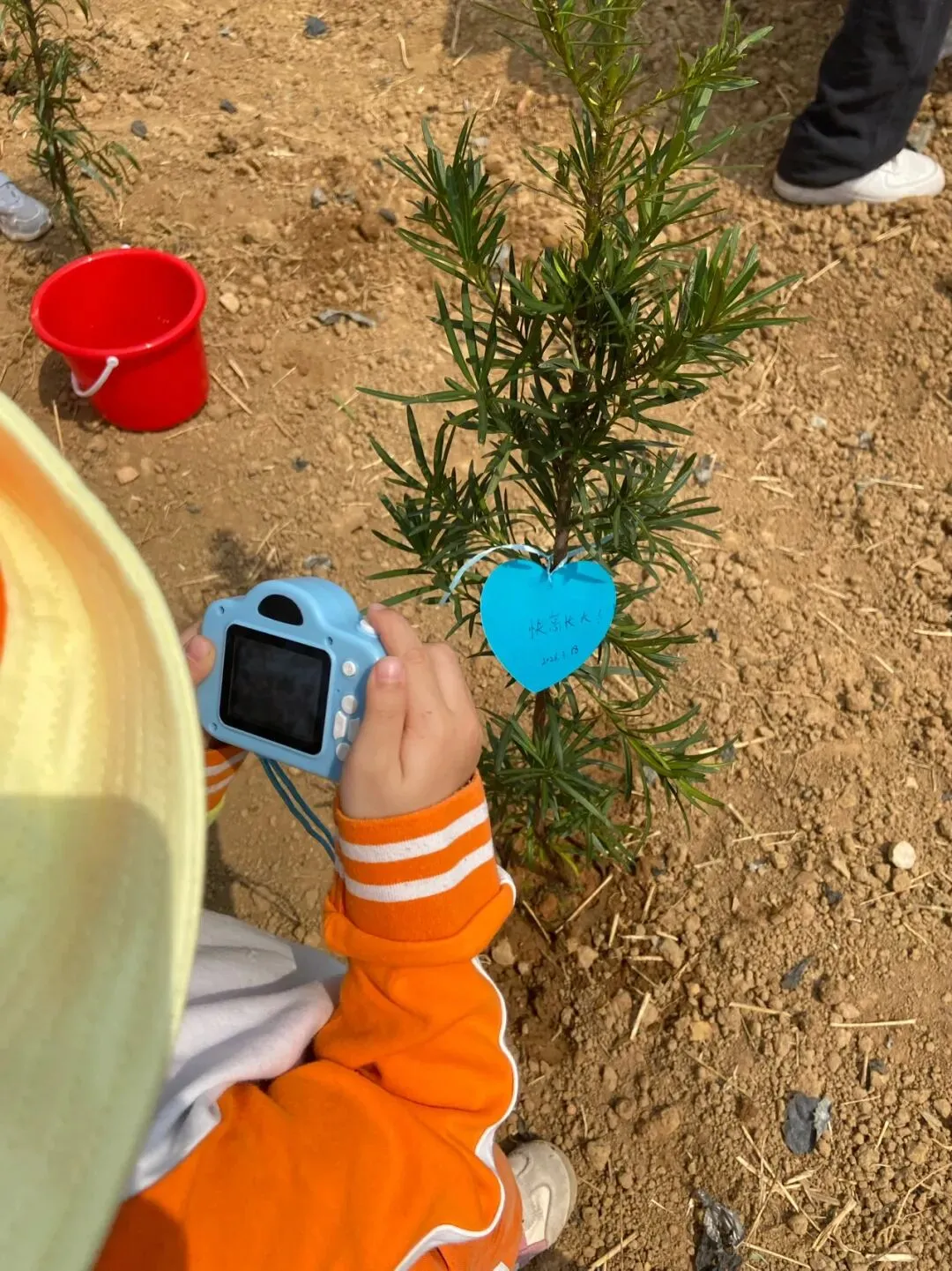 种完树,她赶紧摸出儿童相机,对着笔直的树苗“咔嚓”拍了张照。让爸爸在心愿卡上写下“快高长大”,轻轻挂在树枝上。风一吹,卡片晃悠悠的。