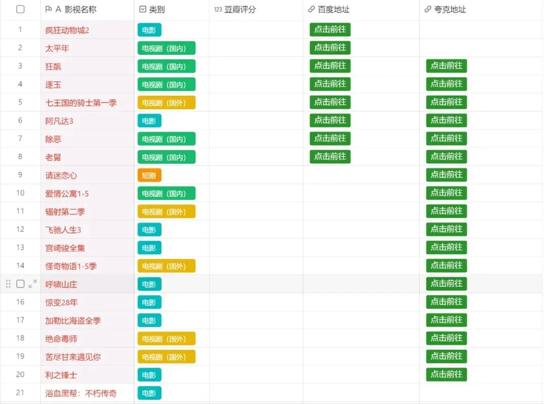 各类影视资源分享各种影视资源持续更新https://www.kdocs.cn/l/ck0i9ew8twv5