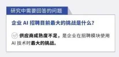 人力资源智享会在针对众多企业关于AI招聘工具使用的调查中发现,虽然大家都叫嚷中要拥抱AI,但这个细分领域的AI工具显然跟其它所有AI工具一样,仍处于起步阶段,最多只能替代完全不可靠的应届生,而不能替代有经验、有思想和善于应对变化的人类。