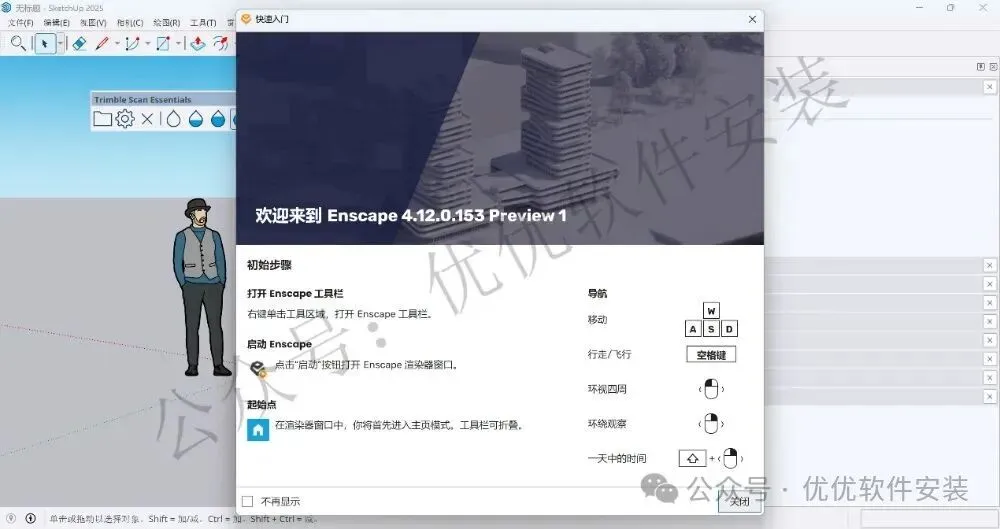 14、软件打开成功,Enscape 4.12在SketchUp 2025软件运行界面如下: