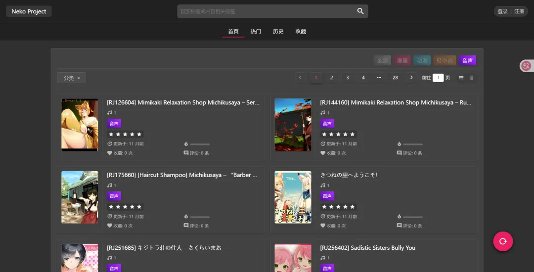 Neko——这是一个主打番剧资源的 网站,不过看下图 右上角,似乎除了番剧之外,还有漫画,轻小说,以及音声资源