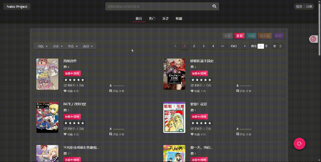 你可以根据地区、状态、受众和类型来筛选自己喜欢漫画或者动漫。可以看到除了岛国的还有欧美等地区的,受众和类型等筛选,绝对能细致分类到具体到某一地区,某一种受众,特定类型的漫画和 动漫资源。