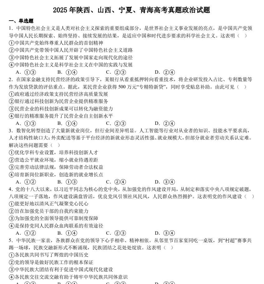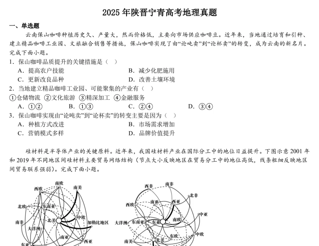 全国高中高考真题及答案全集