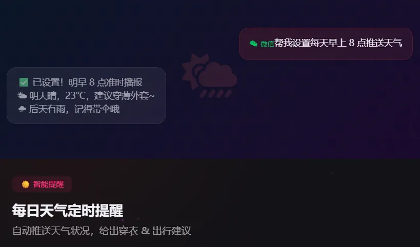 怕错过重要事情也可以让 QClaw 定时给你发微信提醒。