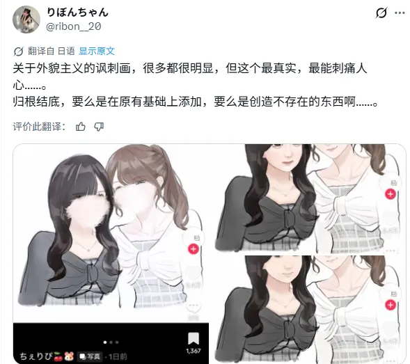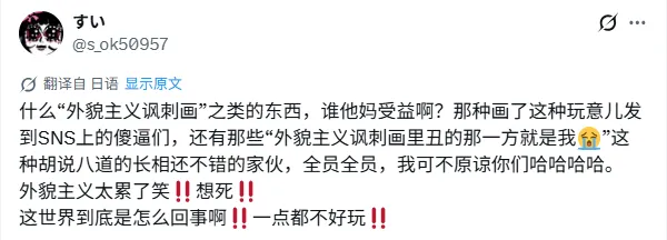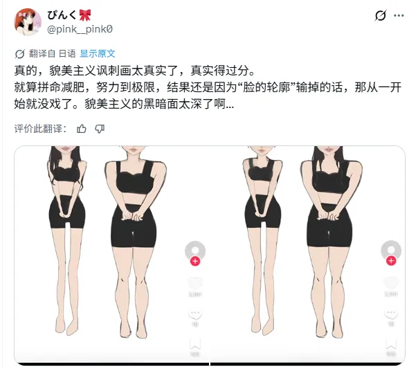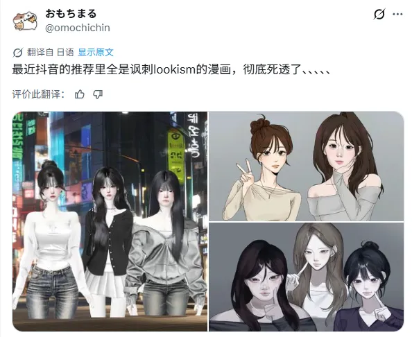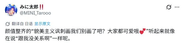 再后来,随着话题热度持续走高,越来越多的相关内容涌现。原本用来揭露社会矛盾以及不合理价值体系的“外貌主义讽刺漫画”开始向着相反的方向发展。