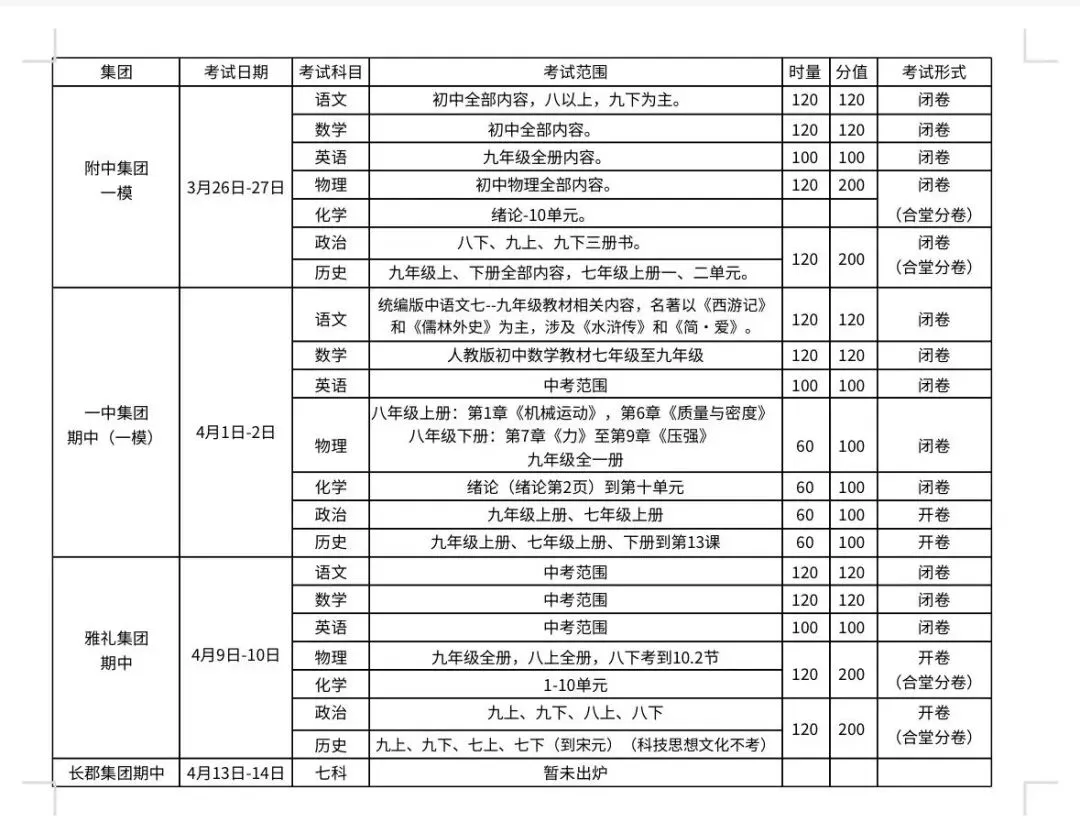 小航老师整理了长郡集团、附中集团模考时间,以及长郡集团部分科目一模命题说明、长郡最新一模卷~