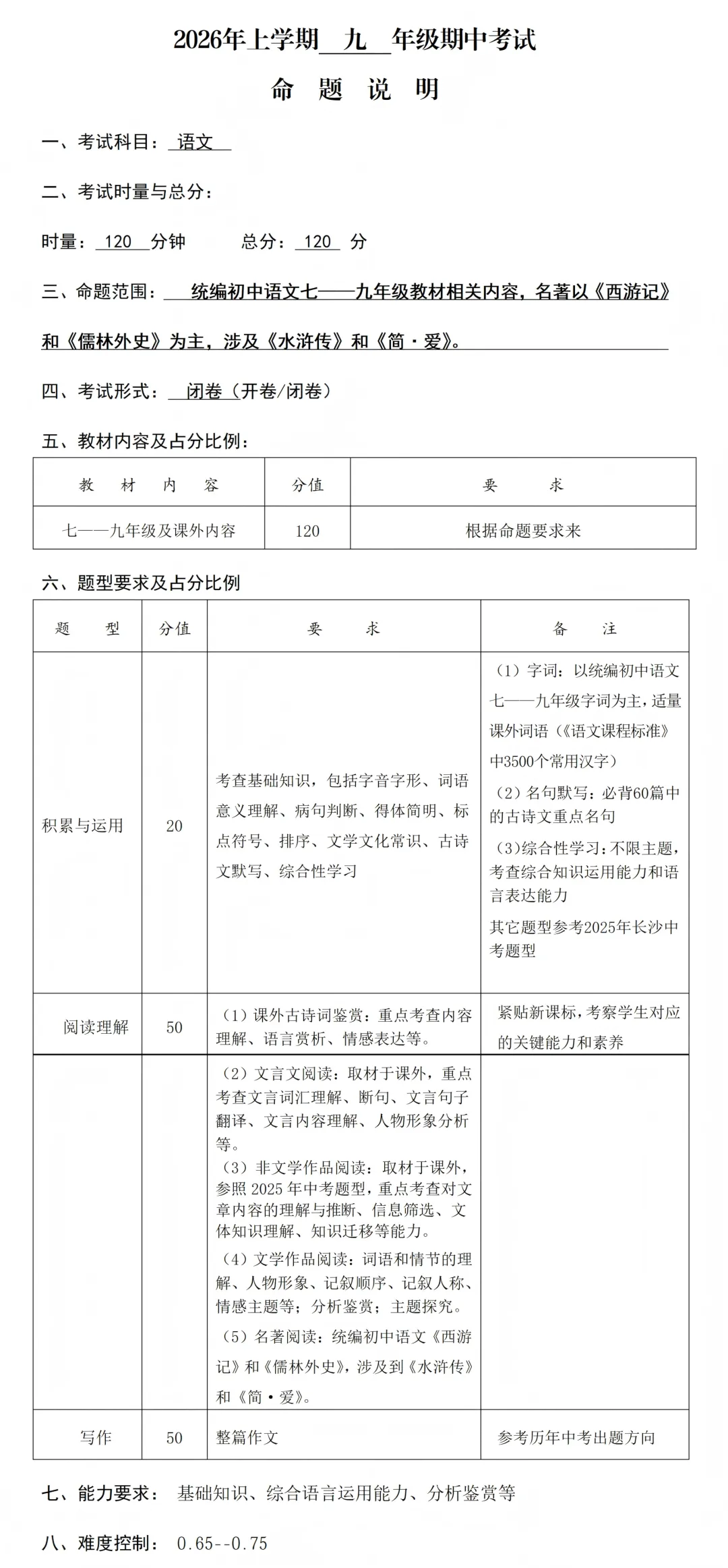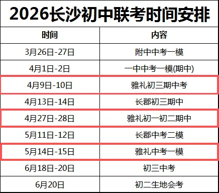 2026年 长沙初中联考时间安排