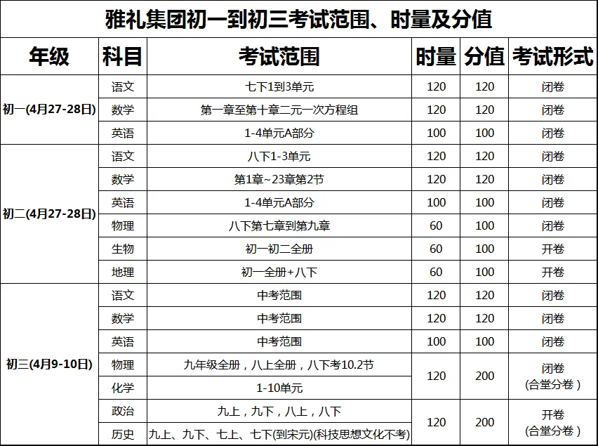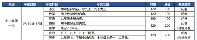 2026年3-4月 四大集团 初三联考安排