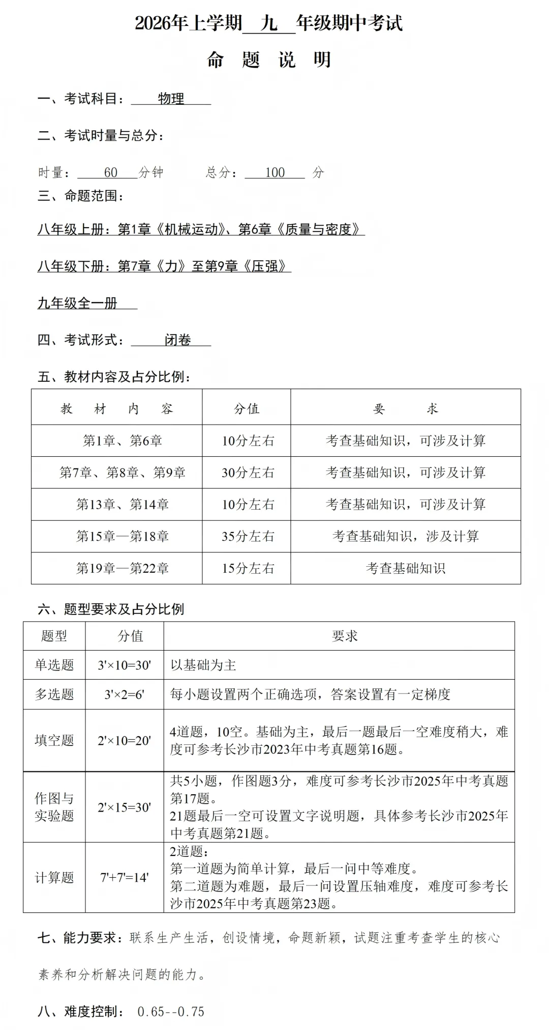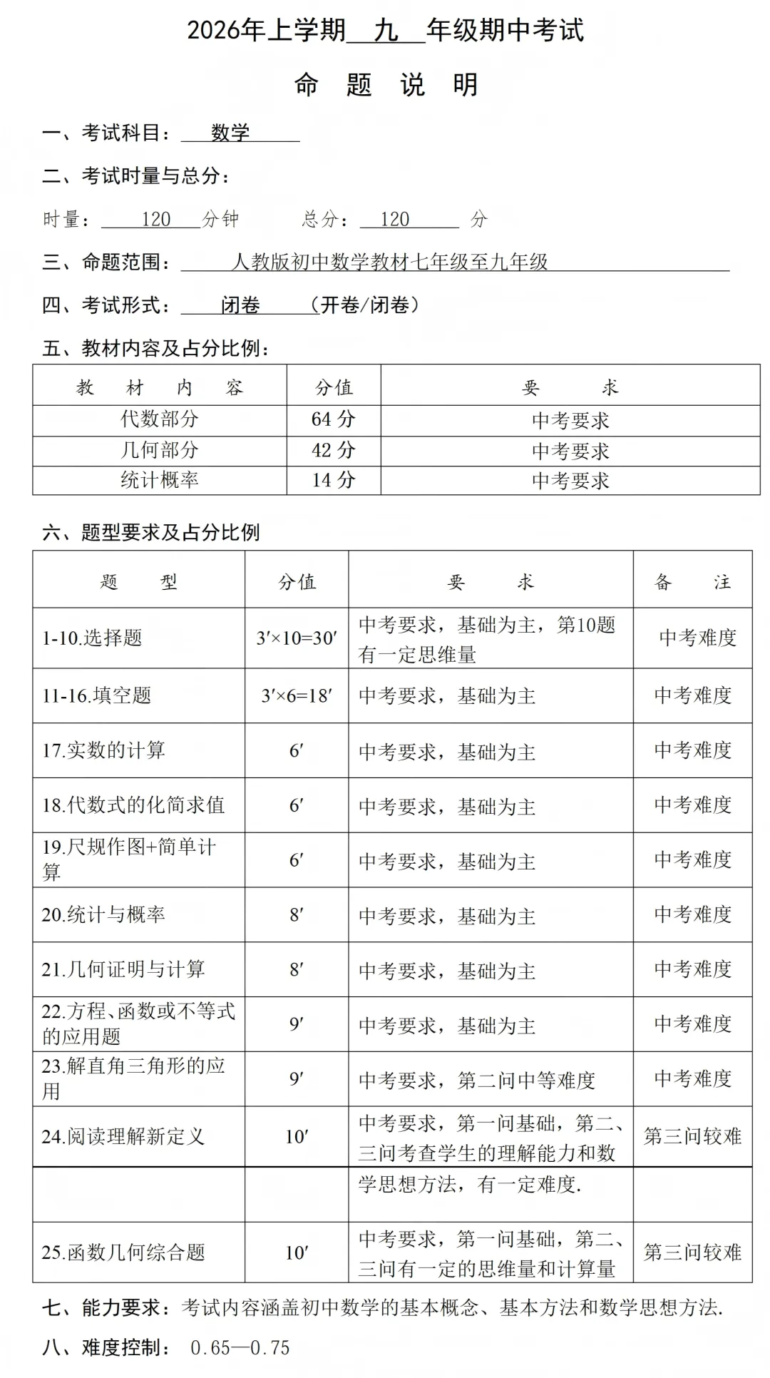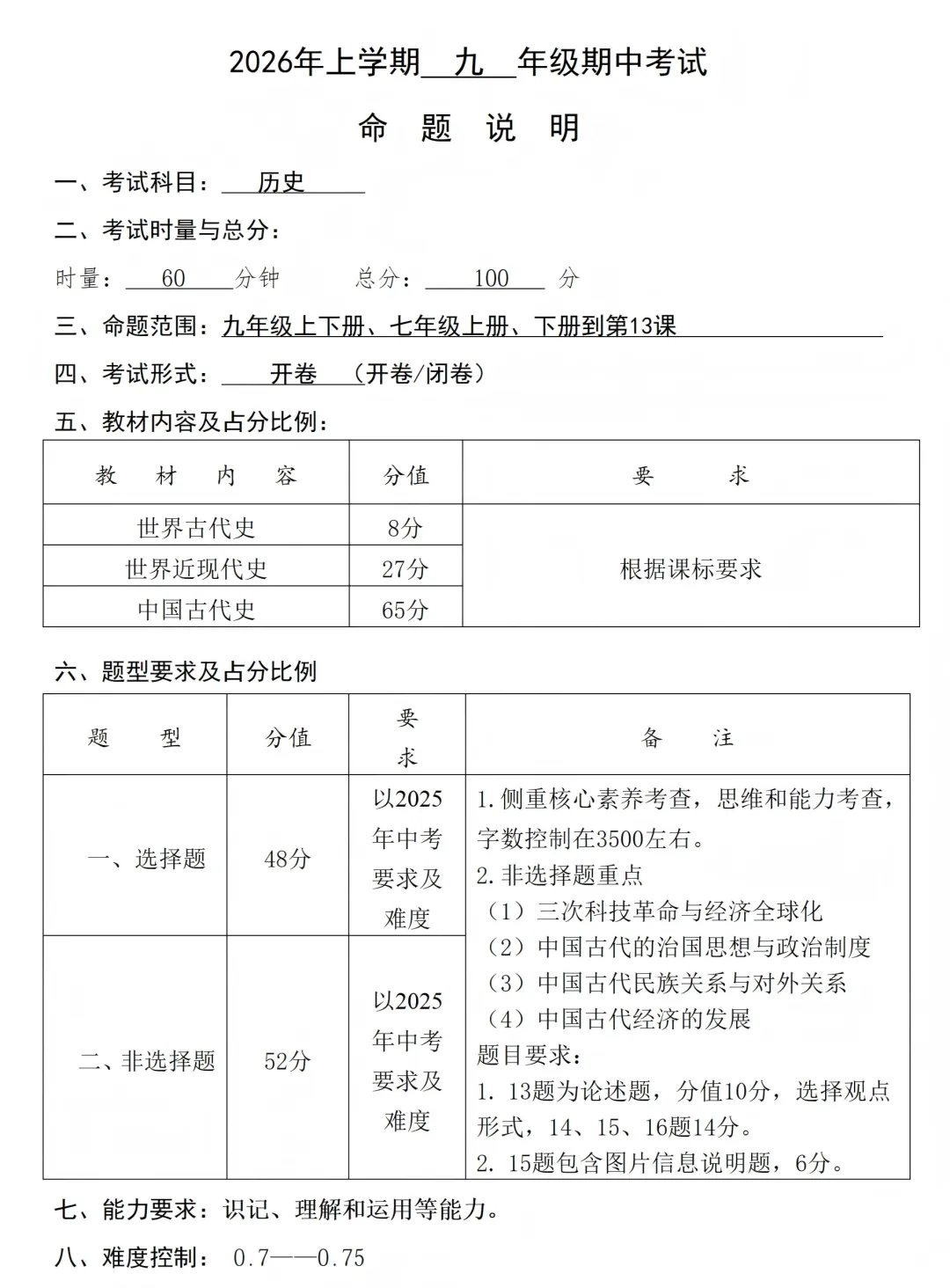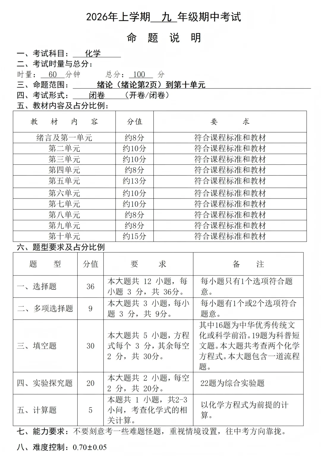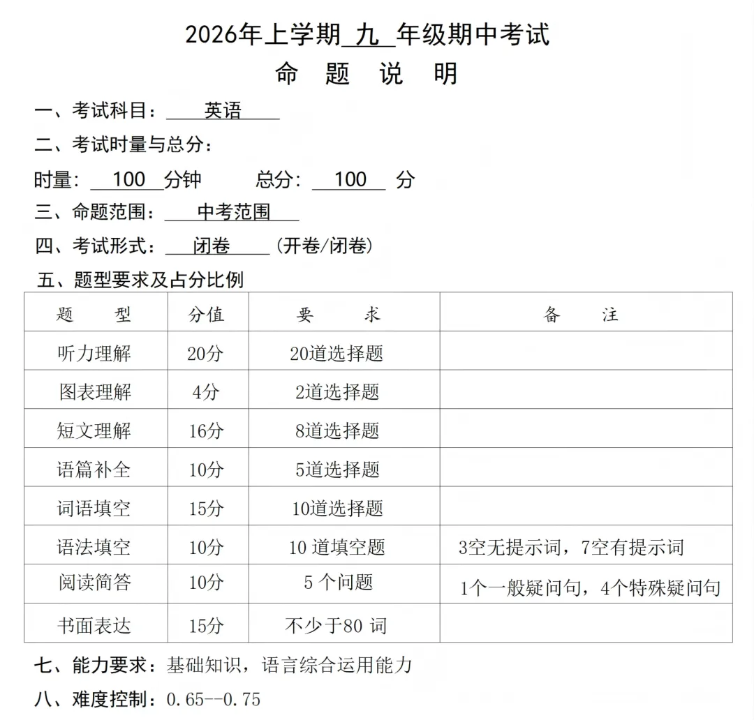 附:一中集团期中(一模)的全科命题说明