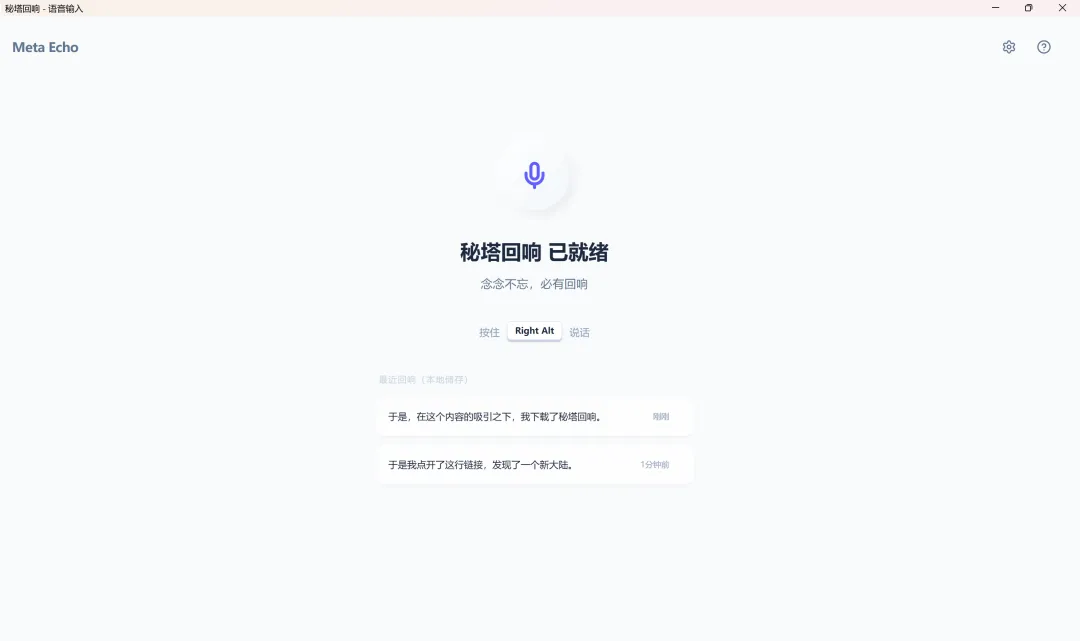这行字什么时候出现的我不知道,但吸引我的点在于,我真的不喜欢打字。尤其是在与AI交流时,需要大量对话输入,若总用打字的方式,效率低,还容易在斟字酌句上耗费太多时间。我的诉求是语音输入,快速生成文字,高效进行AI对话。(以上这段话均由秘塔回响生成)