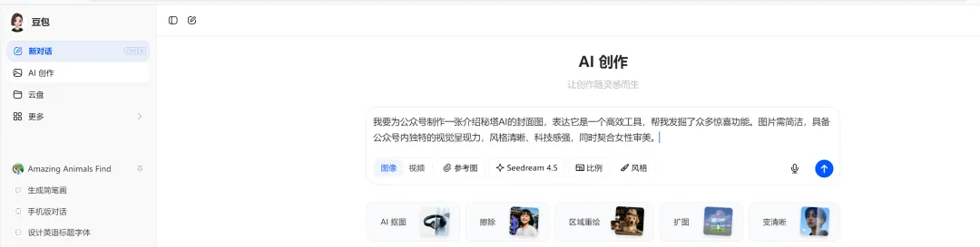 公众号写到这儿,其实我还差一个封面——能不能用回响输入,让豆包帮我生成一张有个性的封面?试一下吧!