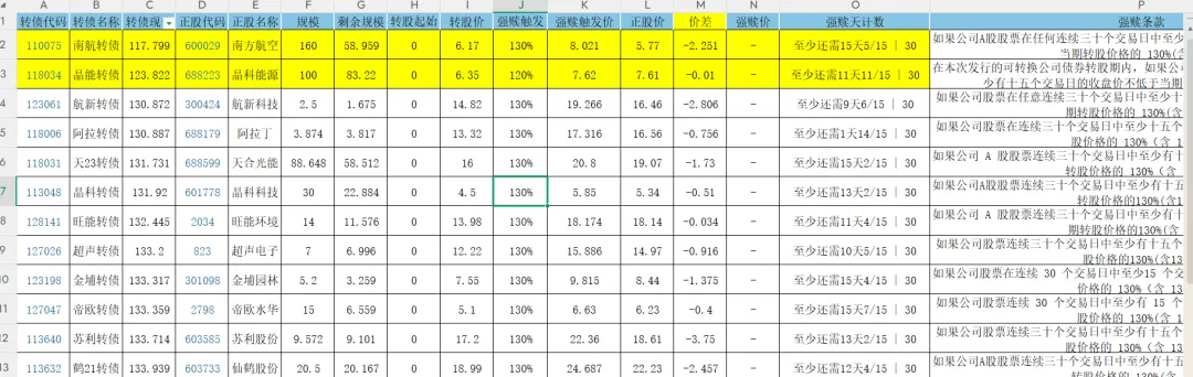 最后我们筛选出来36只正股价格低于强赎触发价的,(这个是截止到周五收盘的数据)