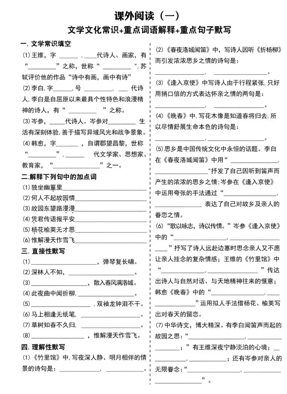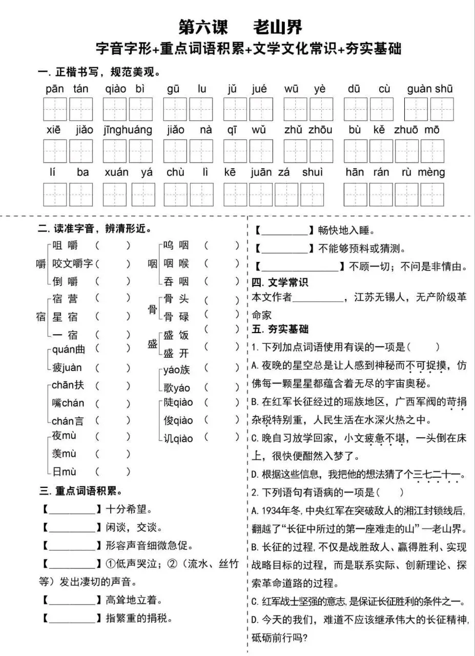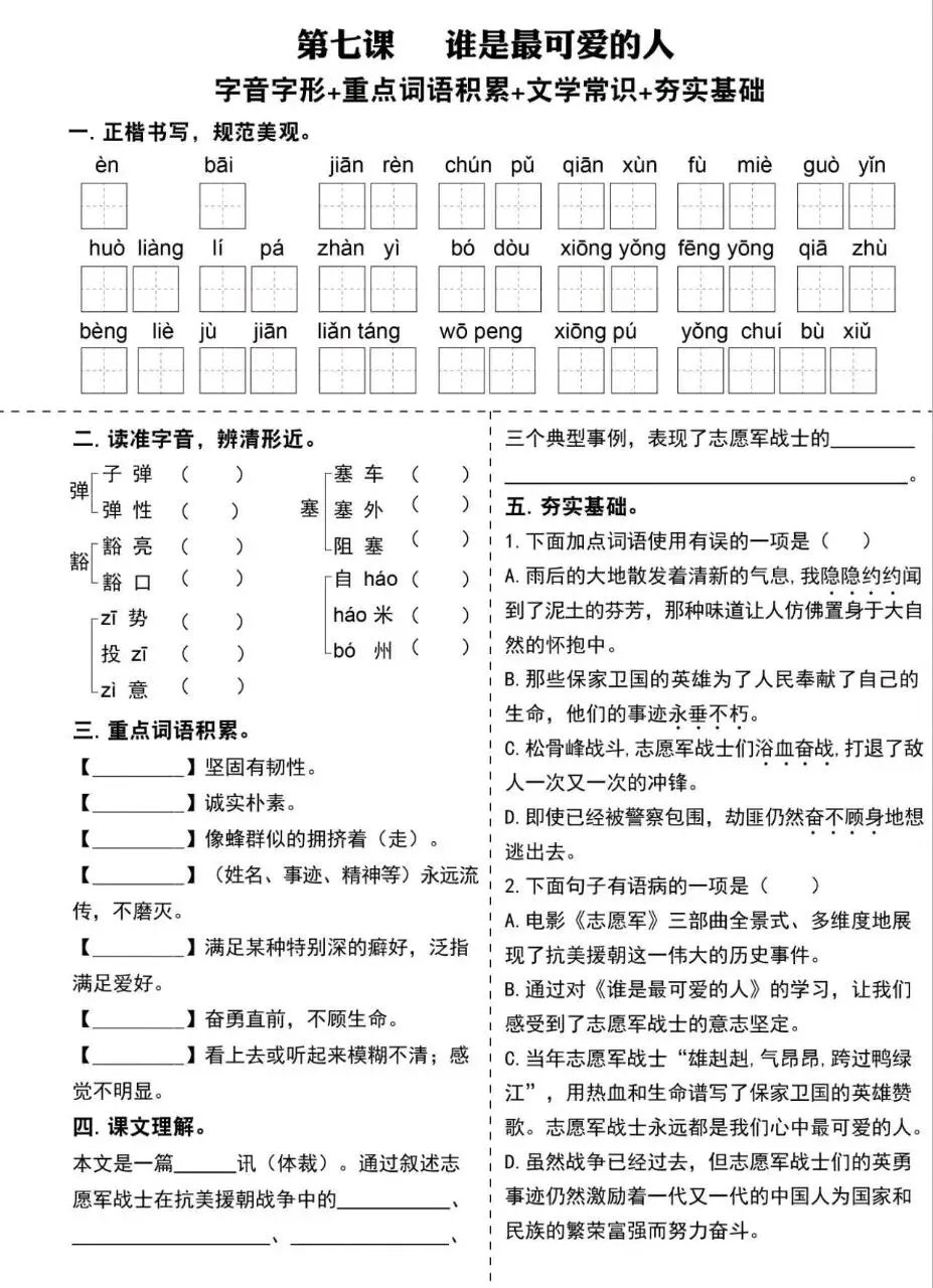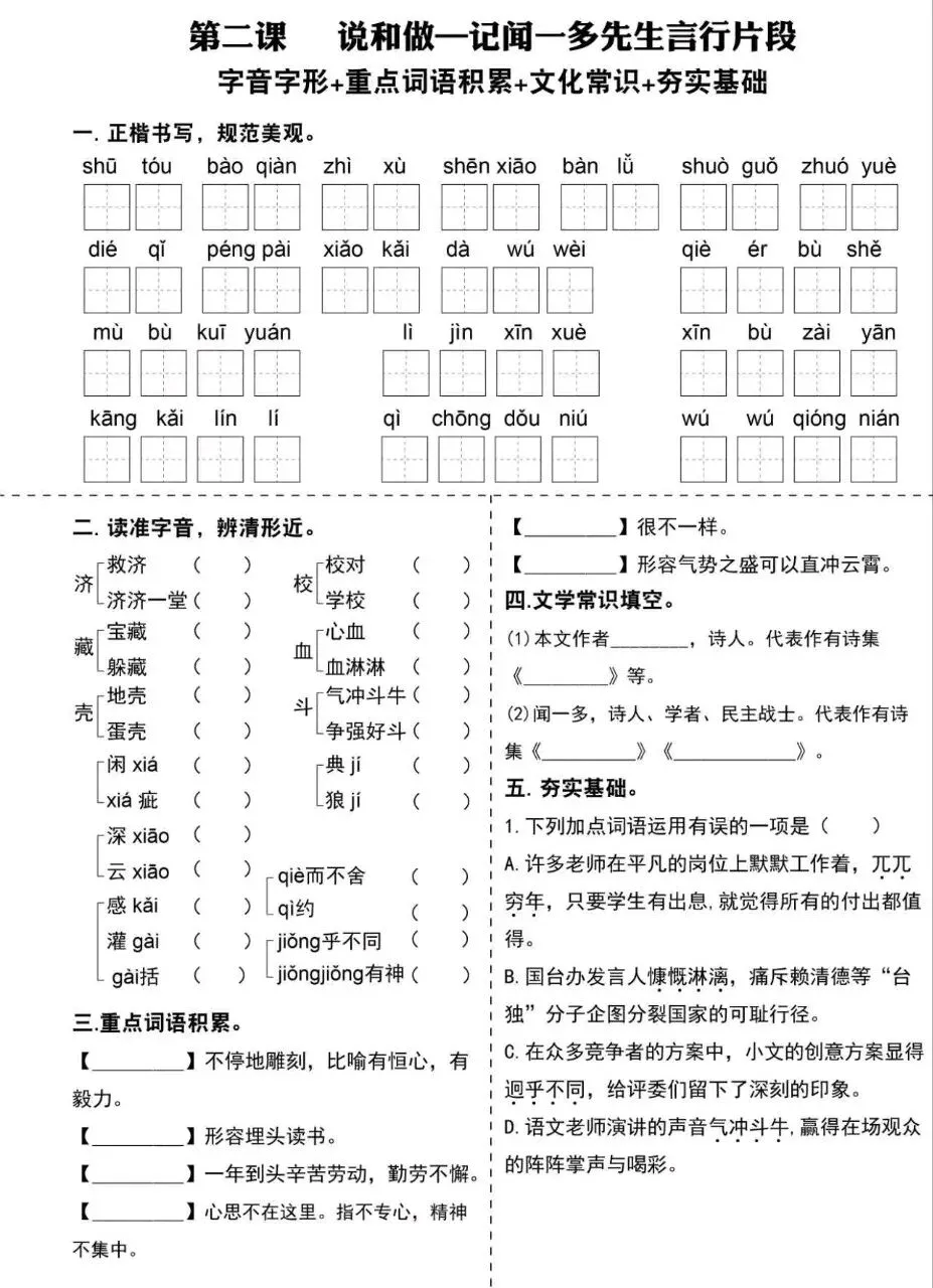 小鹿老师今日分享:七年级下册语文必考基础知识点提升专练