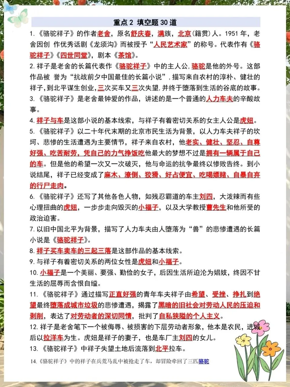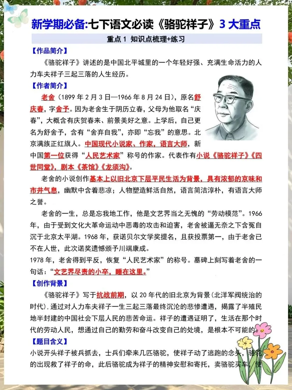 小鹿老师今日分享:七下语文常考名著《骆驼祥子》考点总结