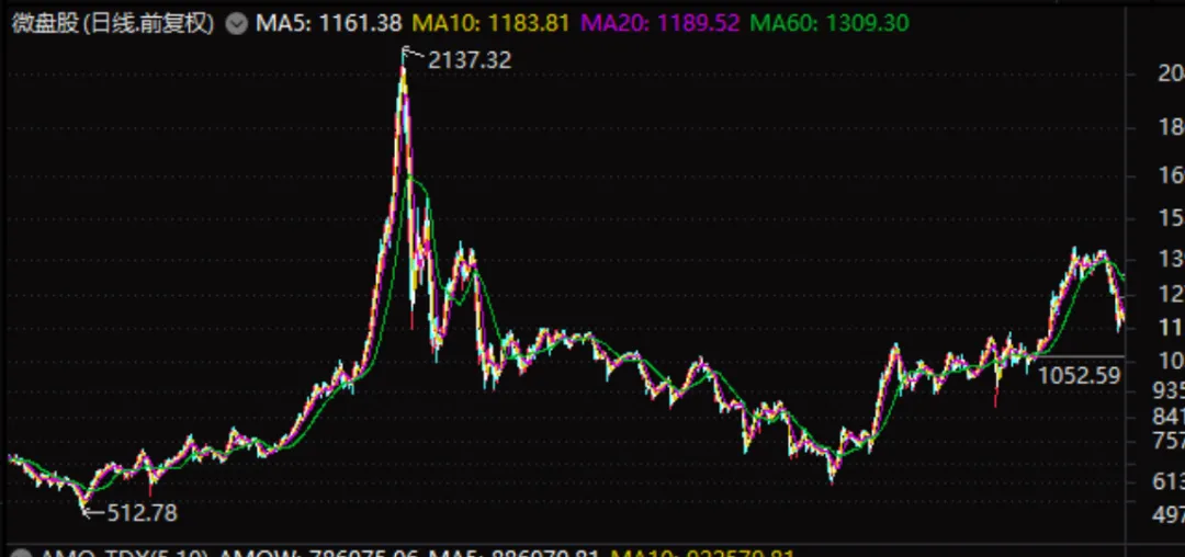今天的盘面上,主要是量化杀跌,重灾区是微盘股