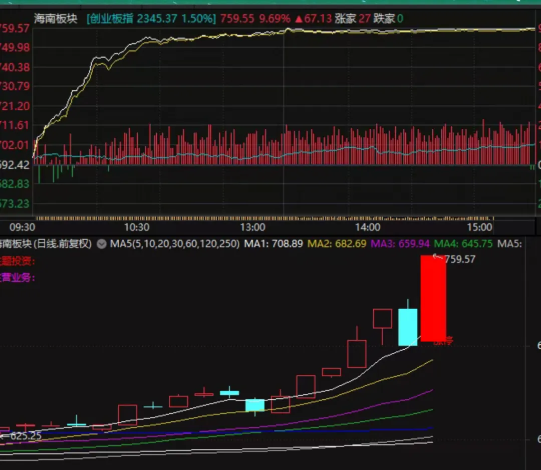 今天的海南板块,和周一的西藏板块,几乎如出一辙,
