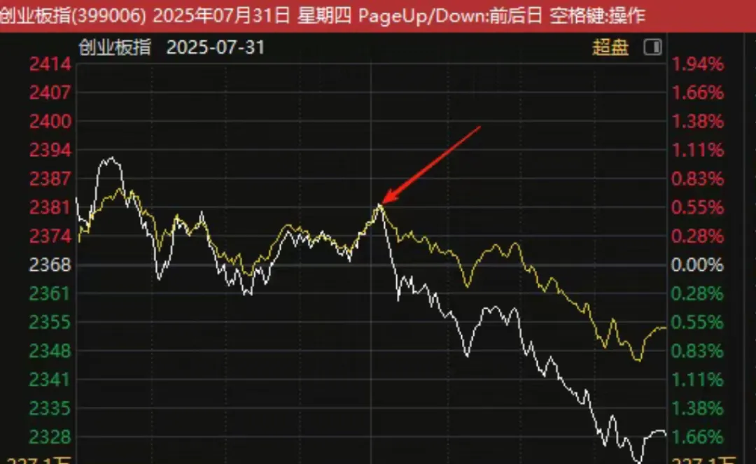 再加上昨晚美股英伟达左右脚梯云纵利好,今天创业板权重易中天大高开,出门黄白线就开叉了,进一步加剧了黄线的杀跌。