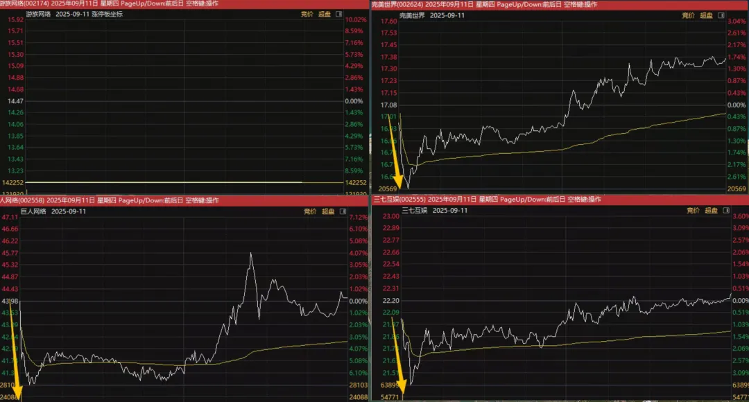 这个对游戏板块的带动效应就很强,游戏板块几乎所有股票,全部开盘核按钮。