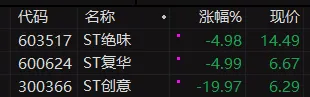 比如,今天三个st股复盘,