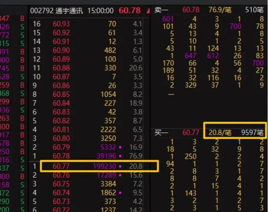 尾盘就能涌出这么多单子,成交了23w手,还有20万手在盘口,均笔只有20手,几乎没有大单,全是小单批量生成,因为尾盘竞价深圳综指涨了一点点,如果没有涨这一点点的话,今天就是收盘成交价是60.78就不会进异动,收盘价就是60.79进异动,那量化策略单挂在60.78,能成交就得到绕过监管的筹码,如果被抢上去了进监管了,那我的单子也成交不到,也无所谓。之前在其他接近接近监管的票上,已经数次出现这个情况了,这只是一种策略。而量化还有其他几千几万种策略,在这个市场上不断运行再聊一个老生常谈的话题,当市场打出非常强的赚钱效应的时候,最优的策略是,做两头,原理也很简单高位的这个很好理解,辨识度高,有人气,量化多,等等,低位的这个也简单,原因也很多,低位的有两种,1就是从当下最强的板块内的地位标的,找补涨的机会,2就是新题材,刚启动,第一时间上