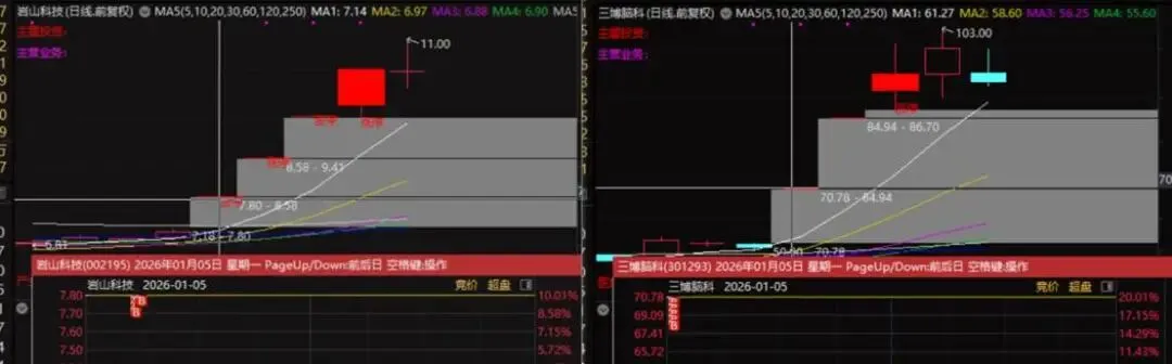 2,新题材,就更们啥好说的了,因为有量化,所以市场绝对不可能只涨一个板块的,新板块,新题材出来,都是可以尝试的,以本周为例,周一出来了脑机,开盘出来脑机订了好几个一字,而且不撤单的,这个时候有可能就会出现“一字定方向”的情况出现,就要留心有没有竞价加单的情况出现了,当时我最先看到的是南京熊猫,当时单子已经撤到两个多亿,开始加单了,但是我下单的时候,下的慢了一点,已经加到5个多亿了,这个排到最后也没有排到,只能留意后面的几个加单的情况了,然后是岩山科技三博脑科的这些加单,因为有留意到了,所以就加的比较快