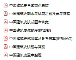 今天分享的资料是「0394-中国建筑史」电子版+学习笔记+知识点总结+期末考试重点+复习资料+习题集及答案+名词解释+历年真题试卷及答案+题库及答案+复习重点+思考题及参考答案+公式总结+考试重点基础题+知识总结+高清PDF可打印+免费分享!