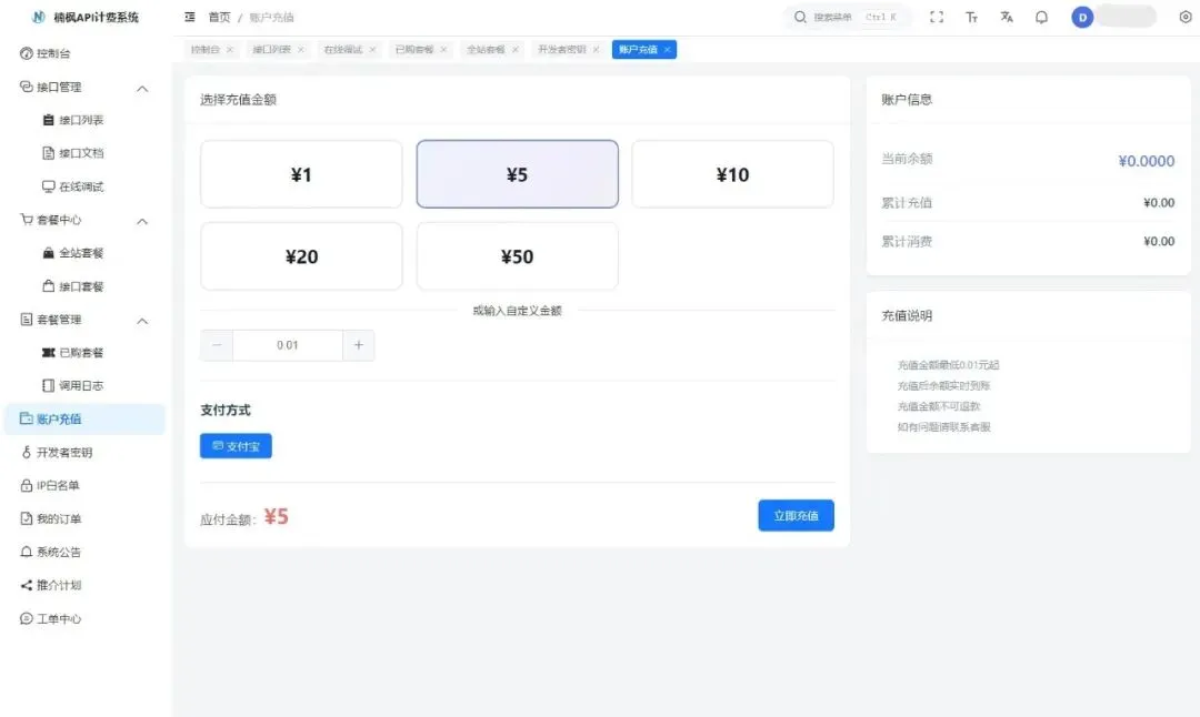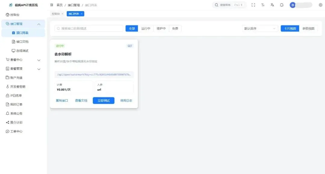 3、调用接口与计费,接口单独设置解析一次费用,例如0.01/次(计费顺序:会员->点数->余额)