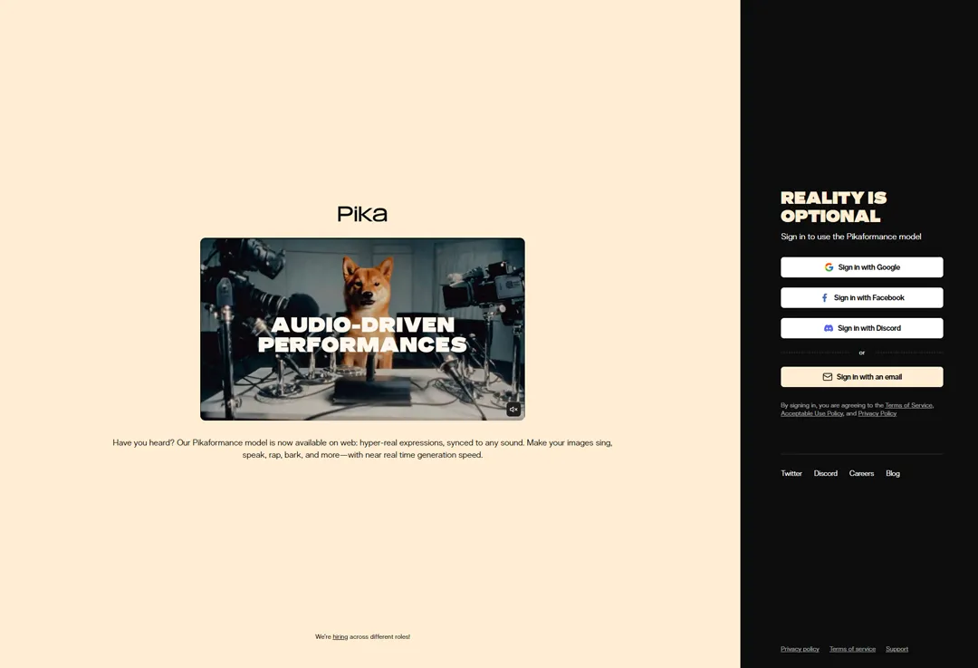 Pika 最早上手,免费,在 Discord 里就能用。但时长限制 15 秒,分辨率 720P,做个人玩玩还行,商用差点意思。