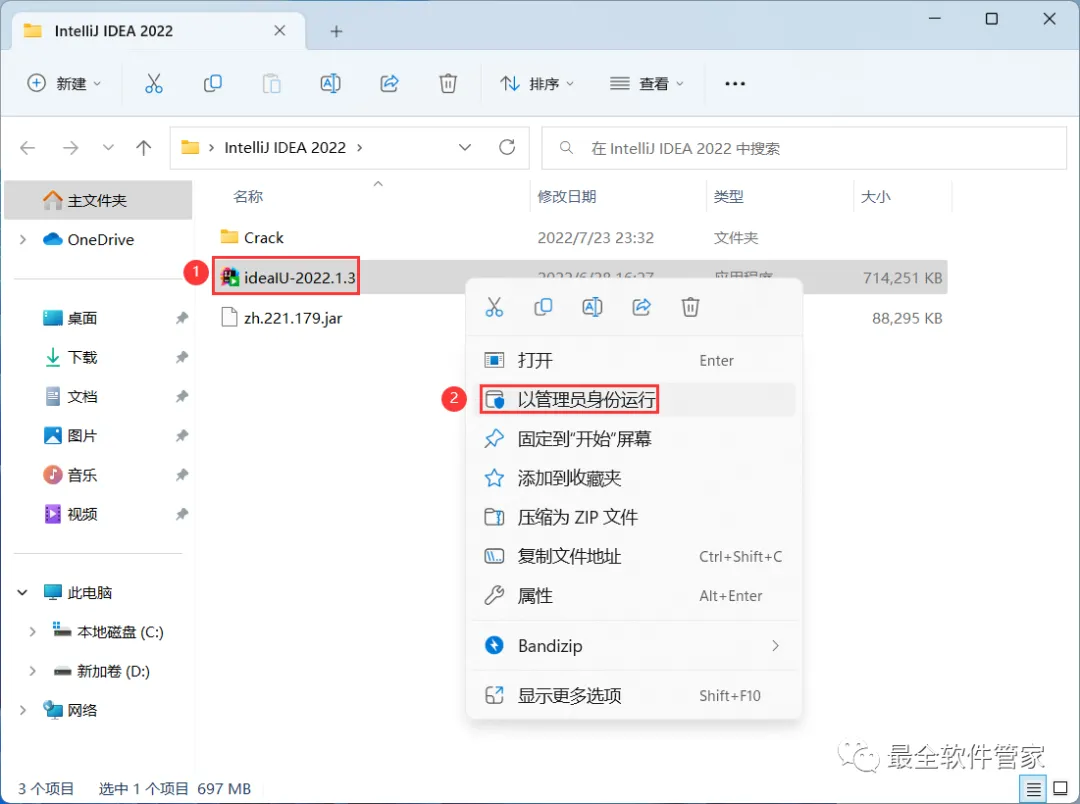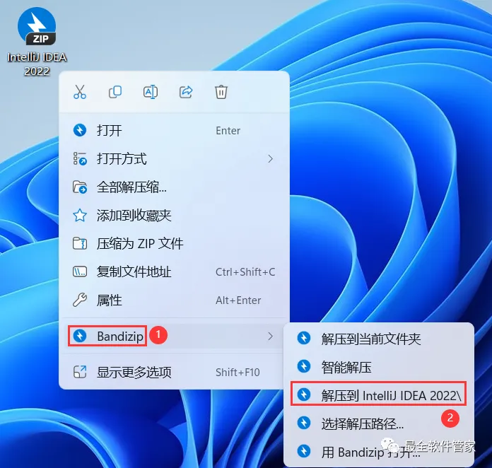 1、下载IntelliJ IDEA 2022软件安装包到电脑上,右键选择【解压到IntelliJ IDEA 2022\】