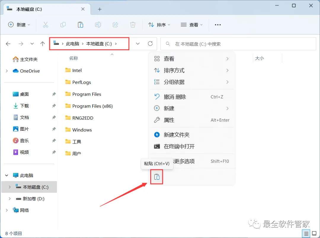 12、右键文件夹的空白处,点击【粘贴按钮】