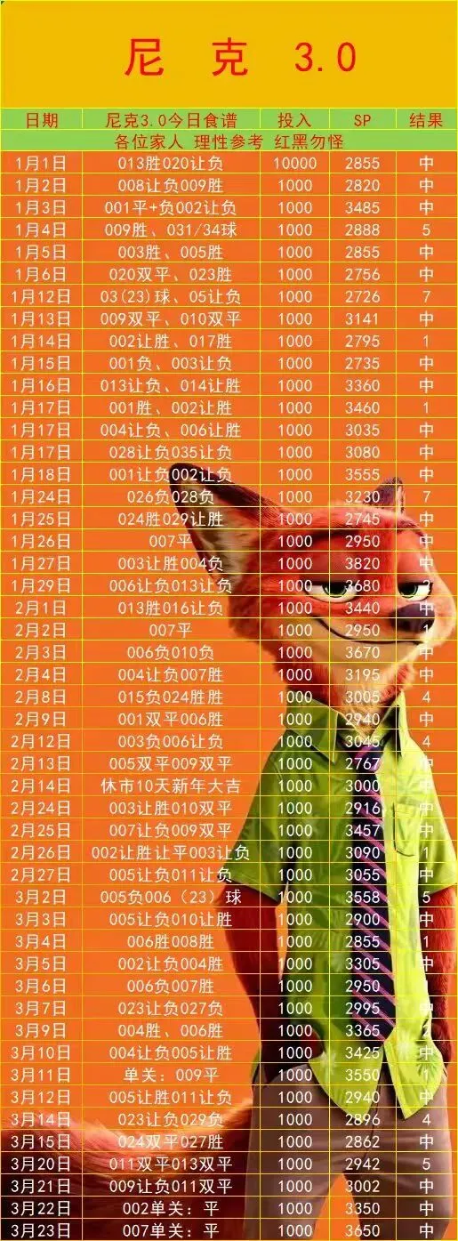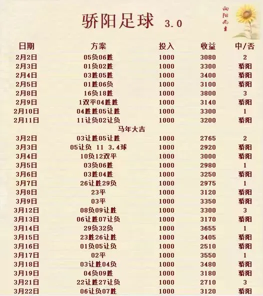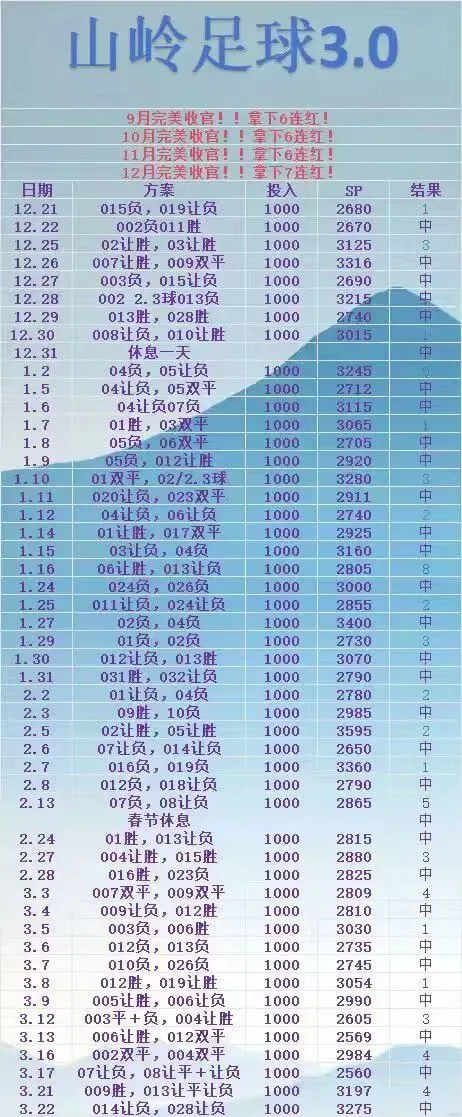 3.22优质足球3.0合集 更多红单获取: 免责声明 文章中提供的相关赛事解读、信息及数据皆来自官方网站,仅可作为参考之用,并不构成任何决定性建议,广大彩民请务必独立思考,自行做出明确决策。请大家遵守国家法律法规,通过合法途径购买中国体育彩票
