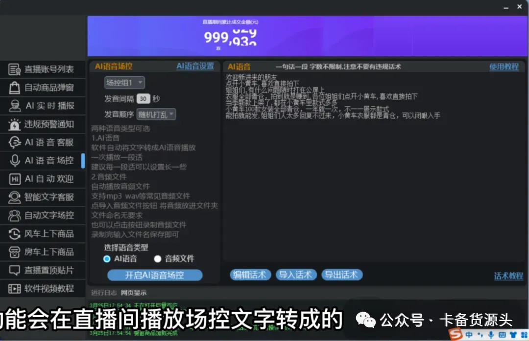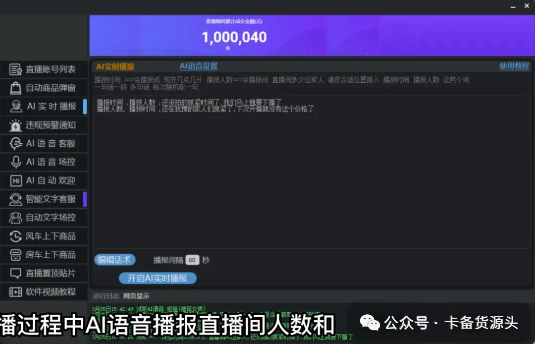 AI实时播报,实时播报时间 搭配话术在直播间持续进行逼单,编辑完成后即可开启!