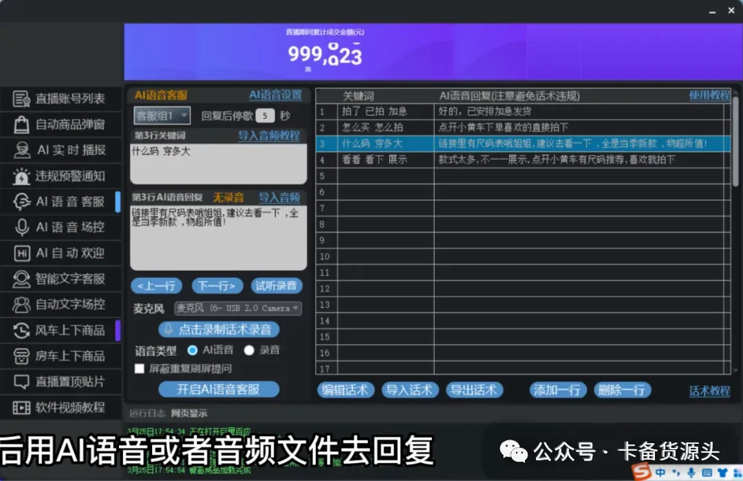 智能客服场控:文字客服支持关键词自动回复、多话术循环,含 GPT 智能应答;AI 语音客服可一对一回复,话术自定义