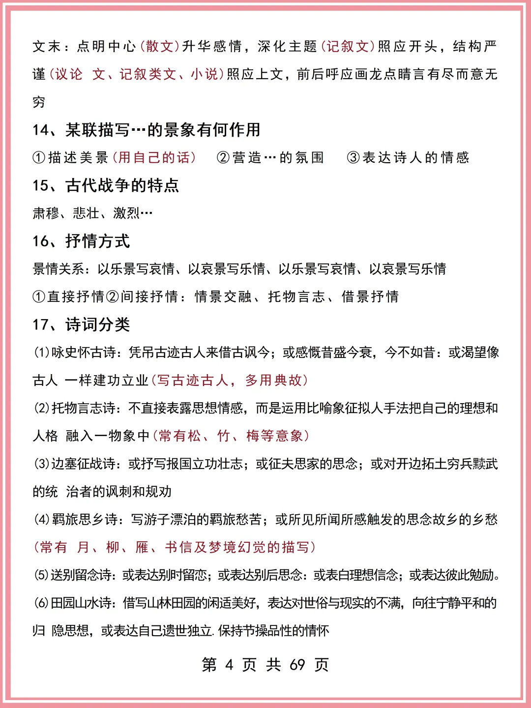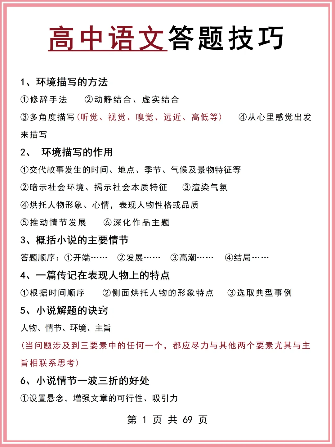 2026最新版:高中语文答题技巧(可打印)还不快看!