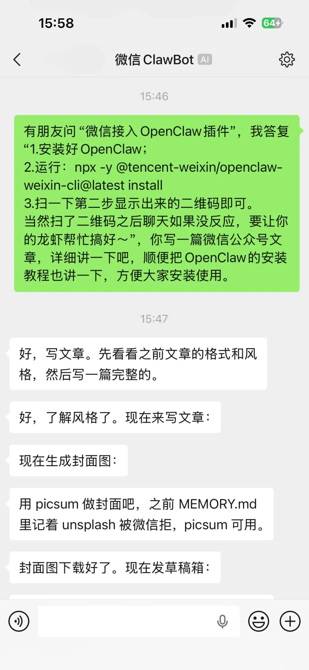 现在你可以自由发挥了——让它帮你查天气、写文章、翻译、分析数据、生成图片……只要OpenClaw支持的,它都能做。