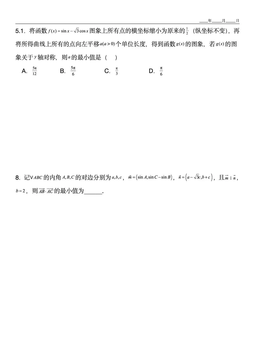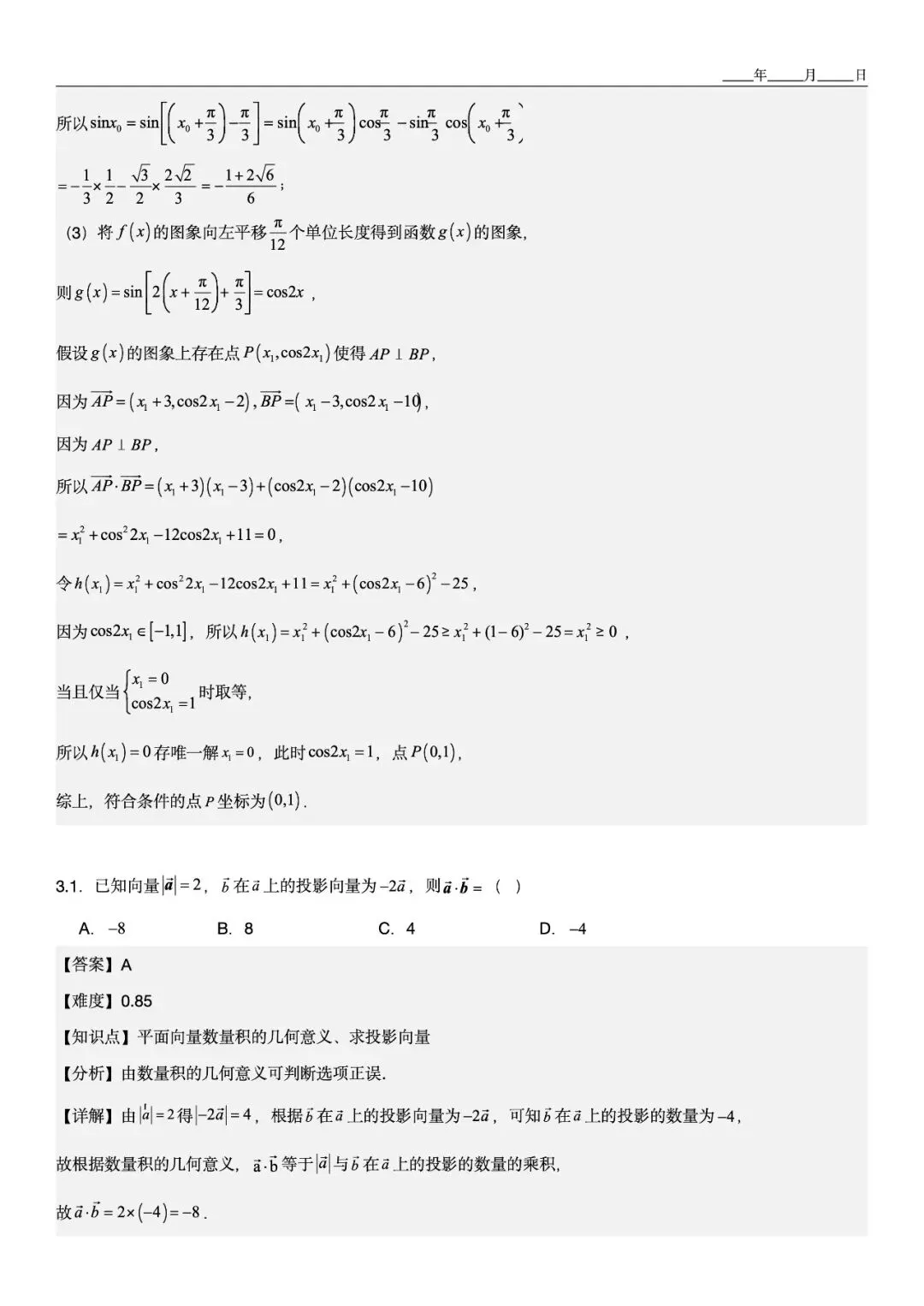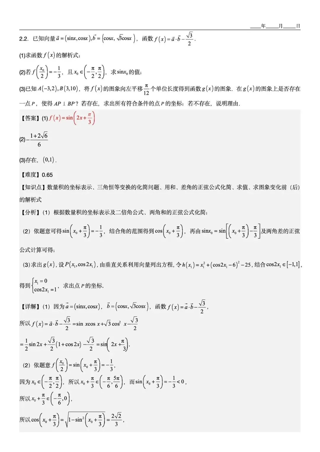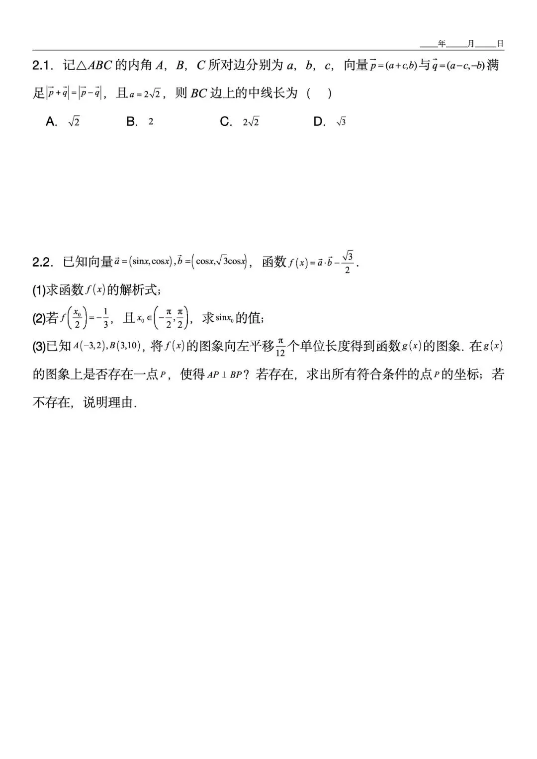 如第2.2题融合向量与三角函数,解题后还拓展“图象平移后是否存在垂直点”的探究 -