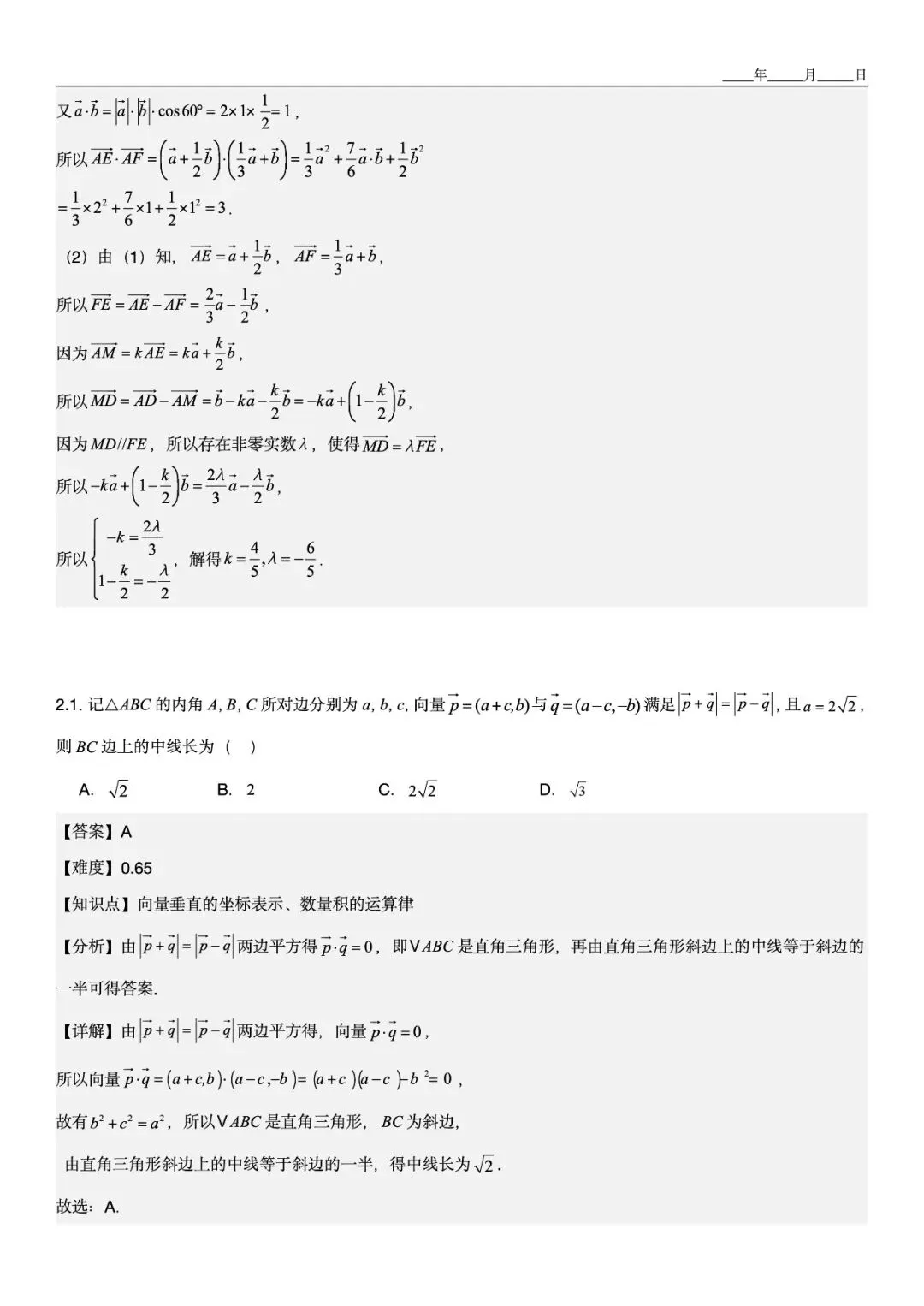 难度分阶清晰,标注0.65中档题,配有步骤拆解+坐标法建系详解 -