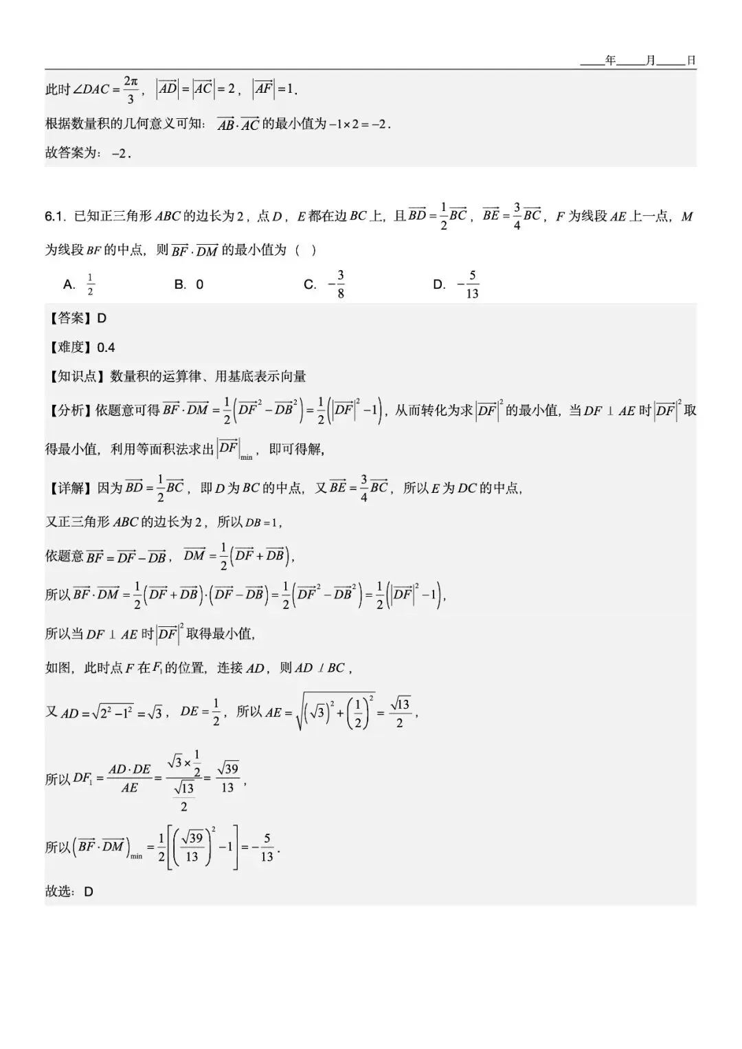 第6.1用基底法解最值问题时,同步配几何图展示投影变化 -