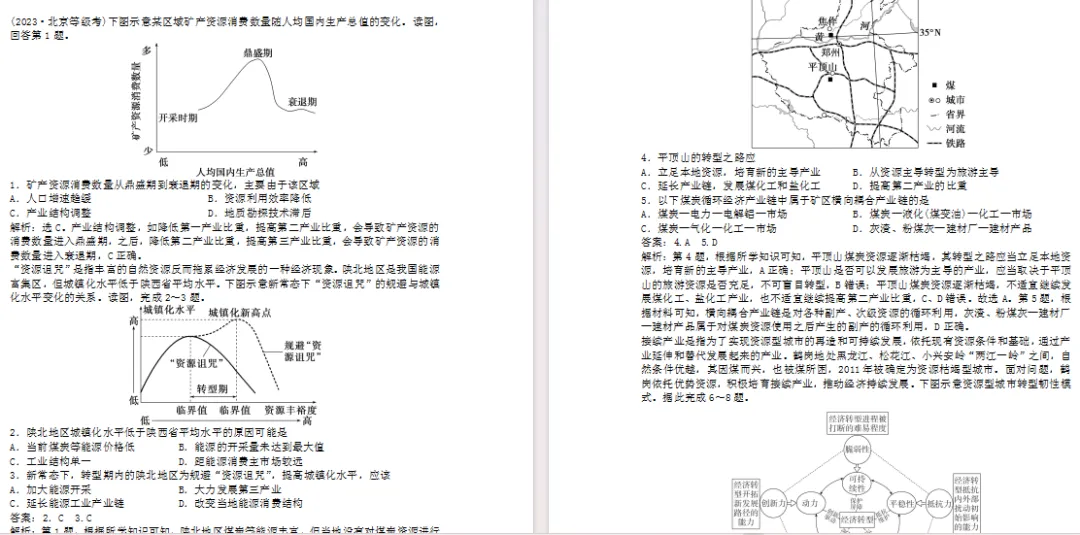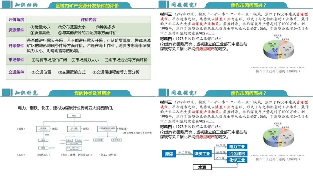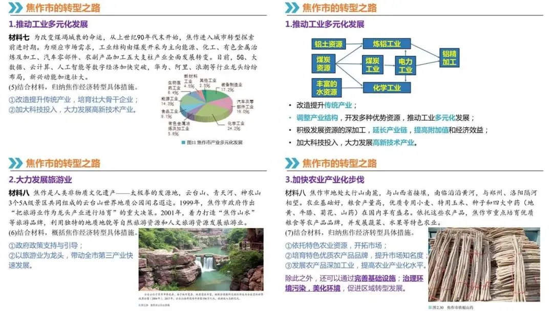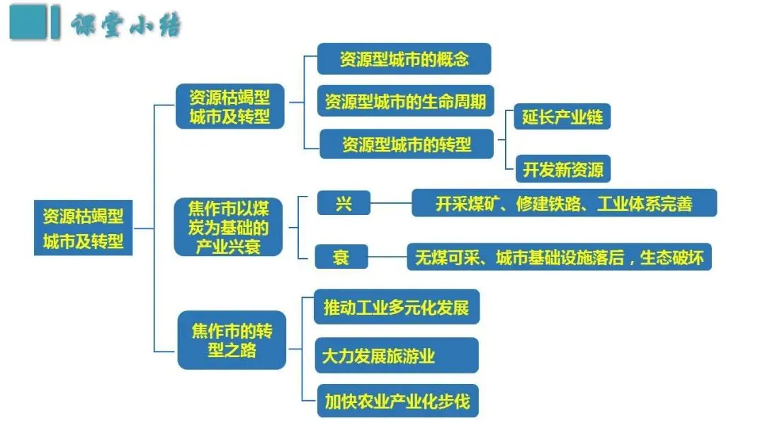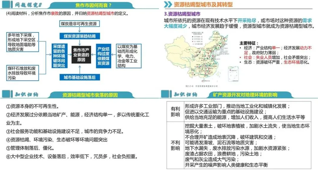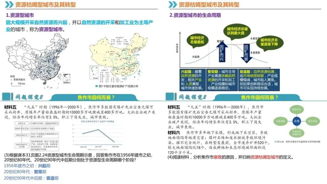 综合思维:以焦作市为例,理解资源型城市的概念及生命周期、资源枯竭型城市的成因及转型发展。