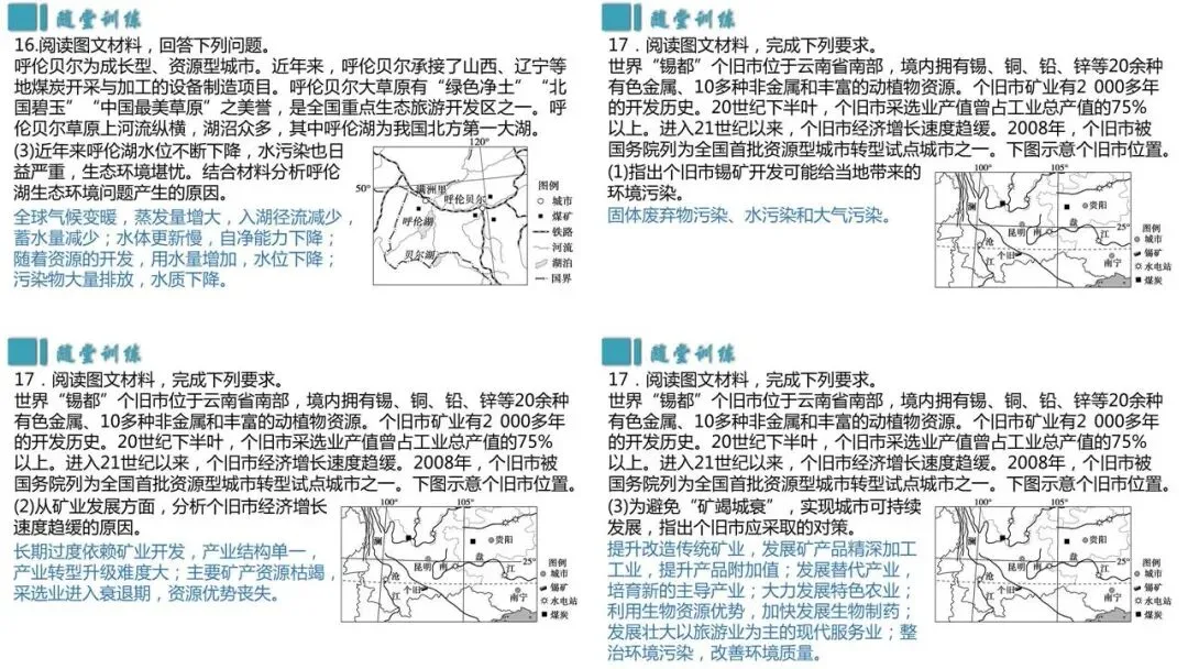 地理实践力:结合具体案例,为资源枯竭型城市实现可持续发展出谋划策。