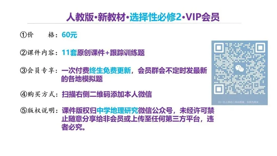 购买本课件的方法:扫描以下二维码转账8元至本人微信(或者加微信13710639484),然后截图到公众号——中学地理研究后台,并说明课件名称可获取本课件可编辑PPT课件+随堂训练题源文件。