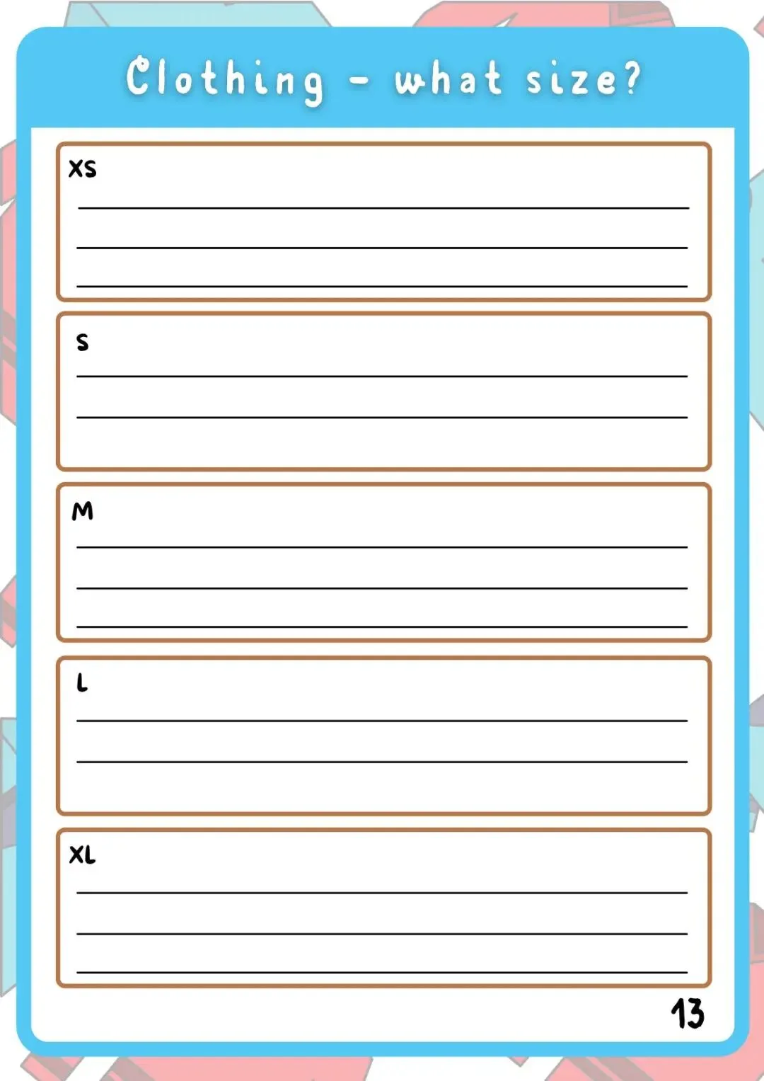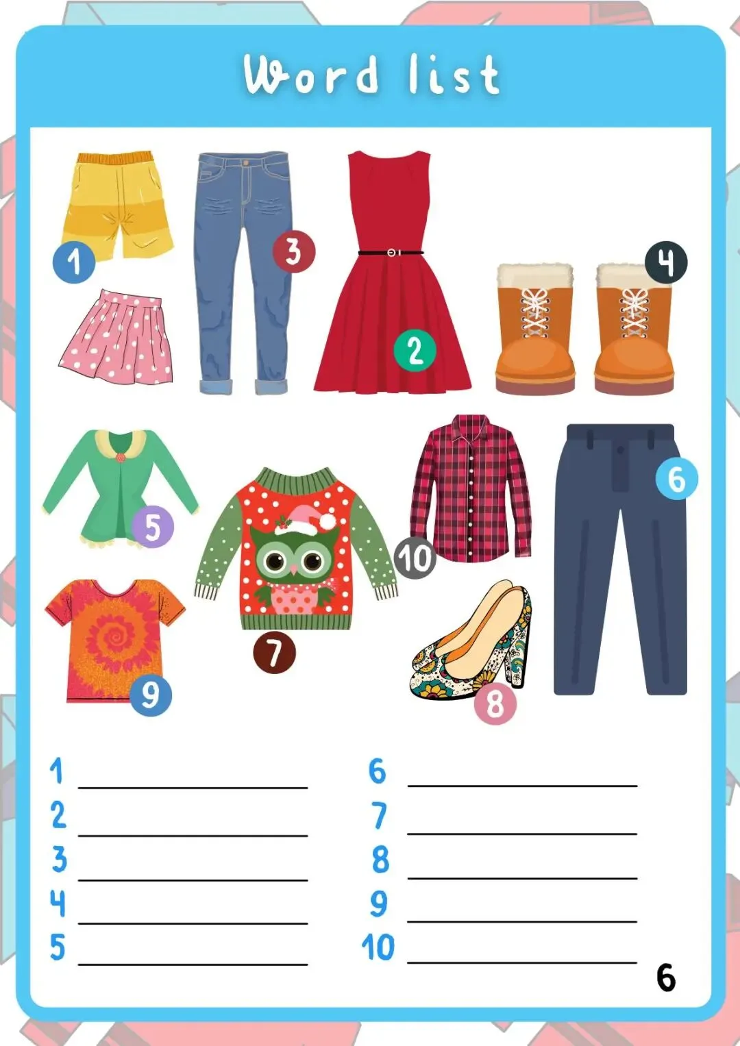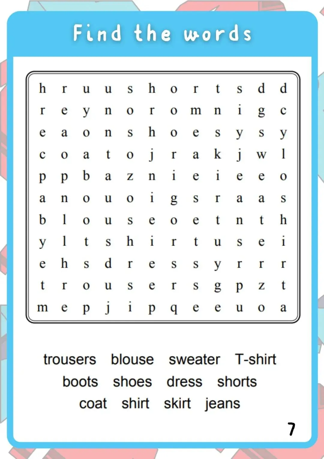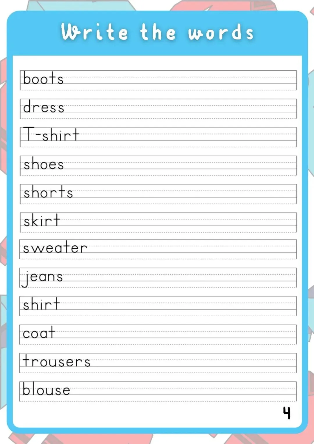 Clothes衣服作业纸