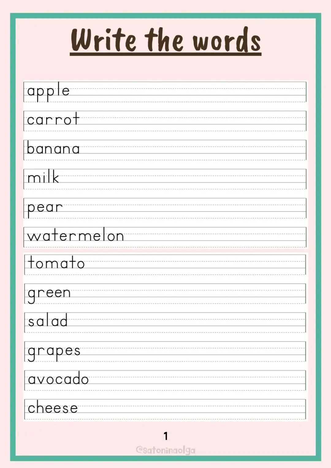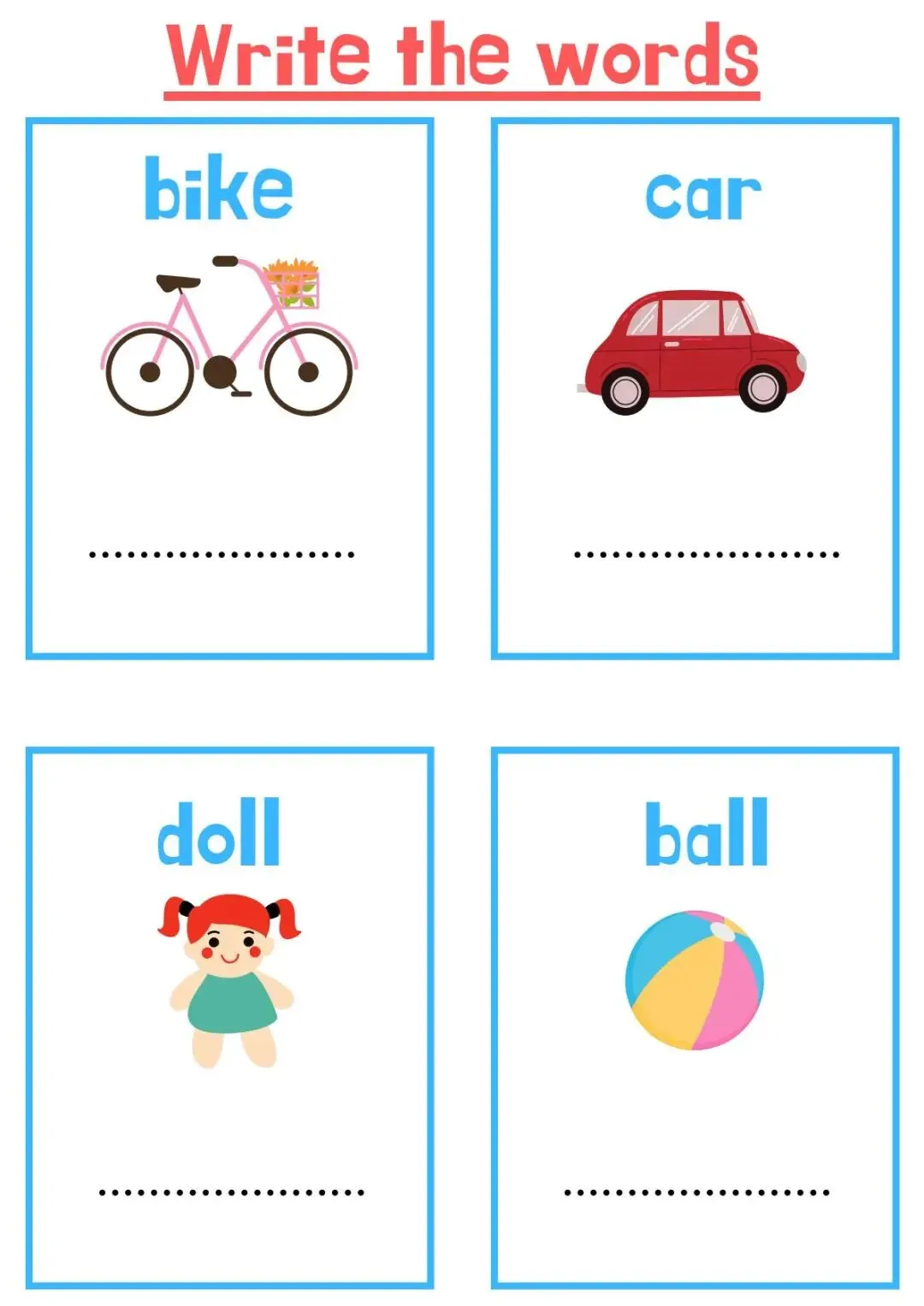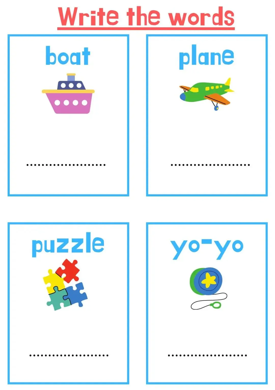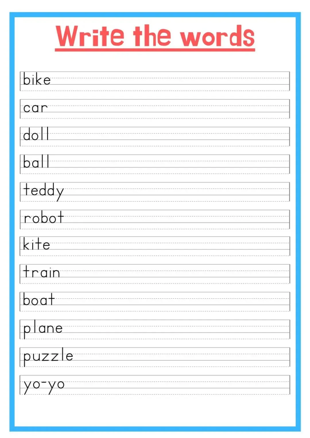 英语认知类单词作业纸