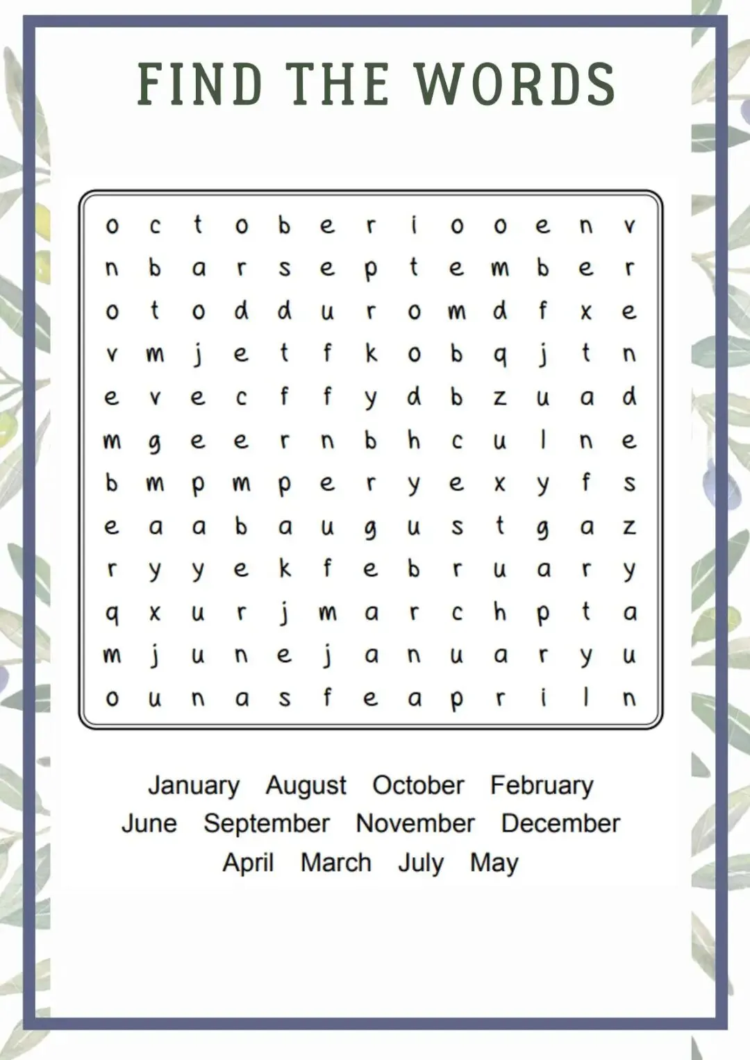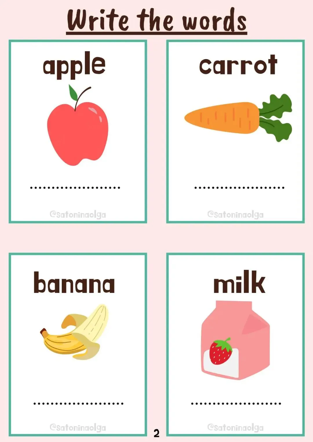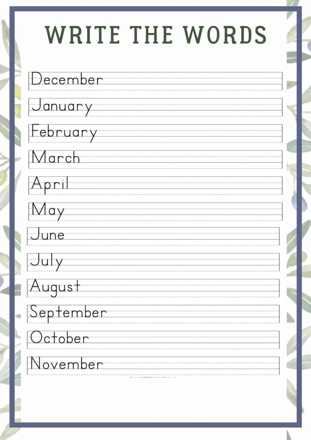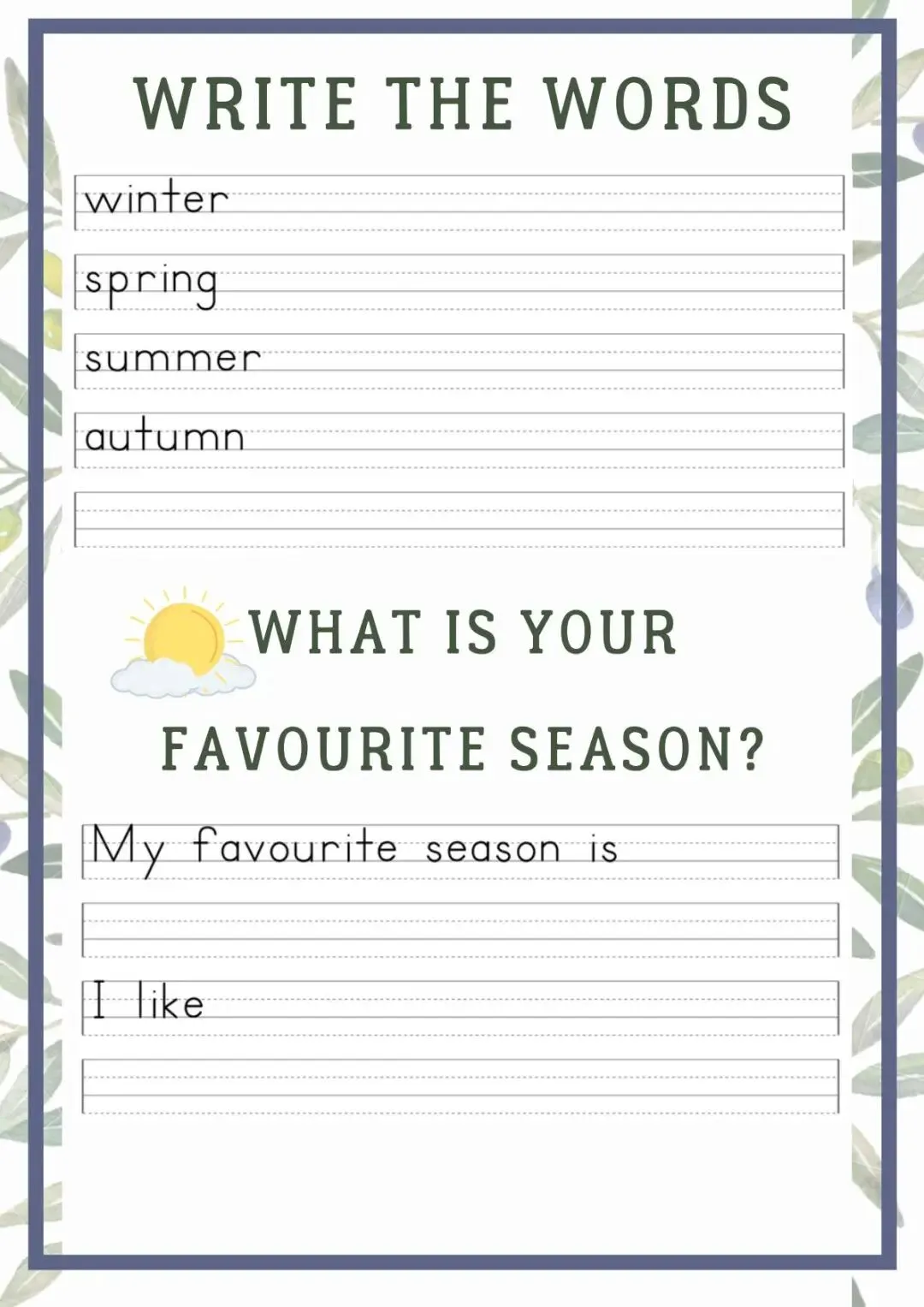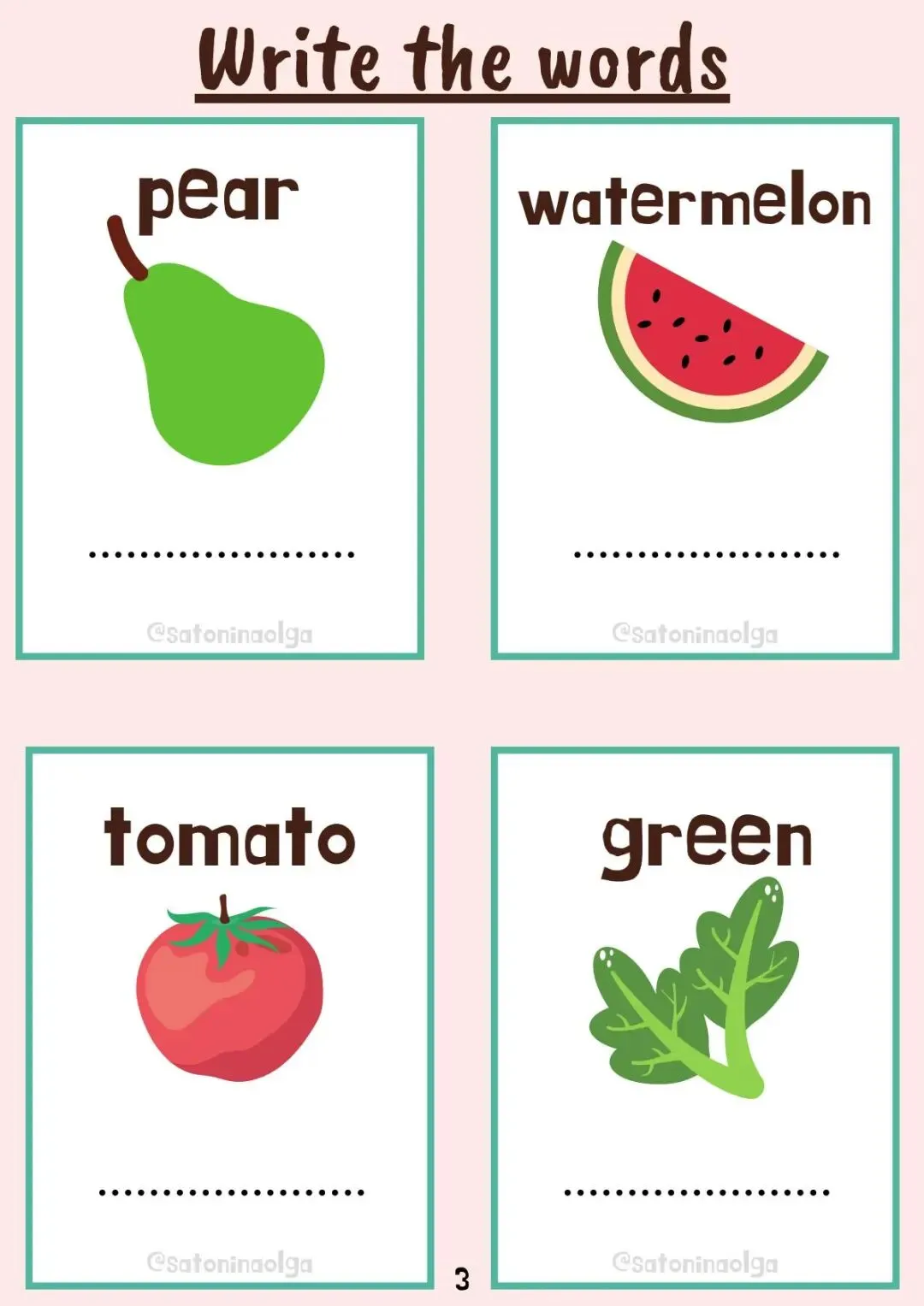 英语认知类单词作业纸